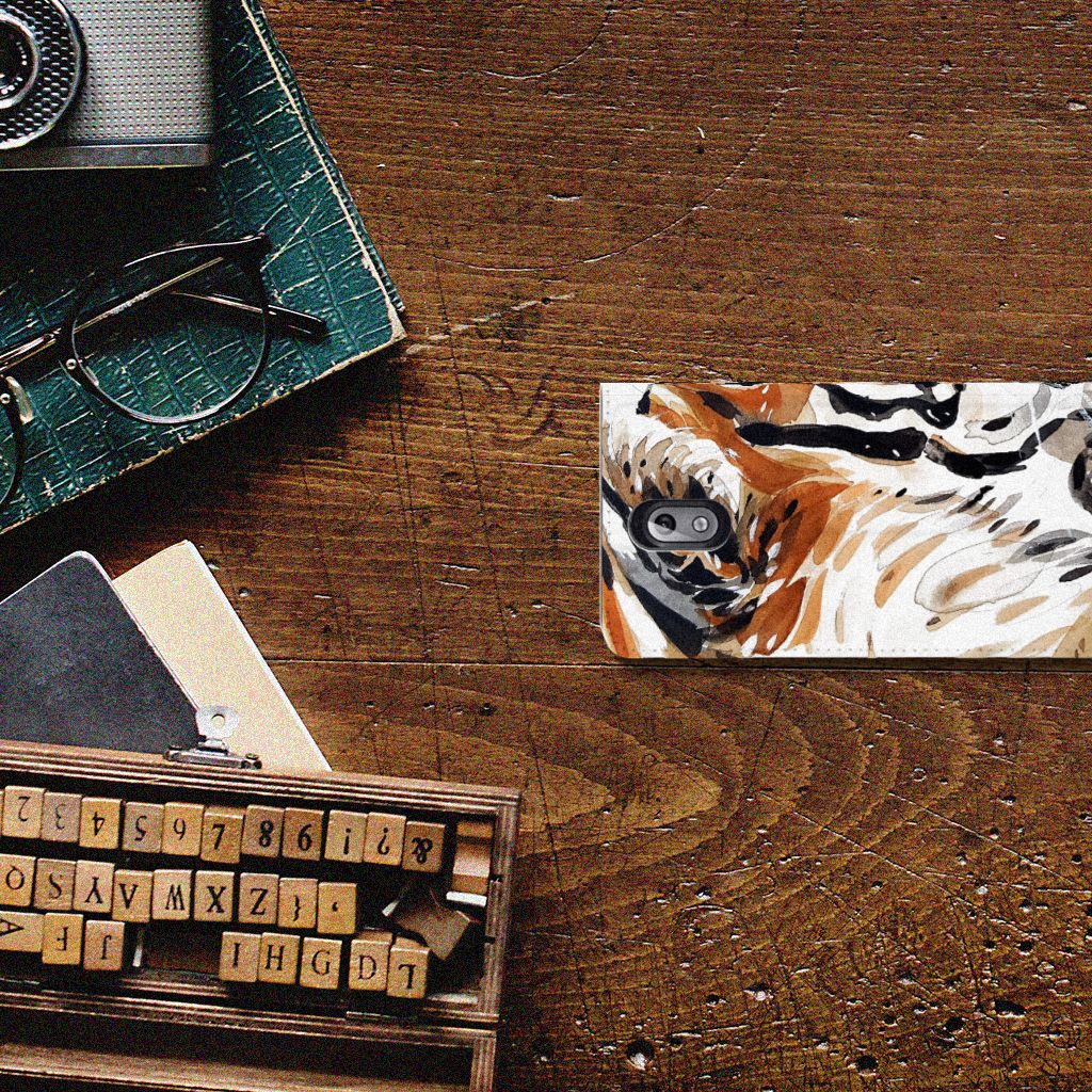 Omdat we tijgers zo bijzonder vinden, hebben we besloten deze voor zeer lage kosten voor jou op een Nokia 3.1 (2018) Bookcase te zetten. Dit kunnen we goedkoop doen omdat we het drukwerk in eigen beheer doen. De tijger staat geschilderd op de stand case tegen een grijs met wit geblokte achtergrond. De Watercolor Tiger kunnen we bedrukken op verschillende soorten hoesjes, zoals deze stand cases. Het hoesje met geschilderde tijger tegen grijs met witte achtergrond is van PU-leer (buitenzijde) en TPU (binnenzijde) en beschikt een houder voor bijvoorbeeld je bankpas. Verder is de stand case met geschilderde tijger voorzien van een magnetische sluiting aan de binnenzijde. Jij zorgt voor de perfecte bescherming van je smartphone met dit stand hoesje met geschilderde tijger tegen een grijs met witte achtergrond.
