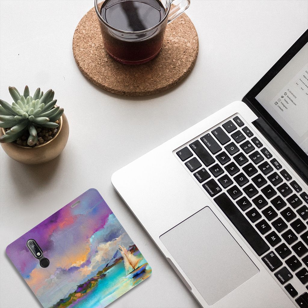 Het mooie ontwerp op dit hoesje zou je zo aan de muur willen hangen. Dit abstracte ‘schilderij’ van een bootje op een meer valt op vanwege de prachtige tinten blauw en paars. Een prachtig hoesje voor de liefhebber van kunst, boten en landschappen. Met een Bookcase is je Nokia 7.1 (2018) goed beschermd. Dit populaire smartphonehoesje heeft één vakje voor een pasje of briefgeld en is aan alle zijden bedrukt. Met de standcase zet je je telefoon gemakkelijk neer, zodat je je handen vrij hebt als je bijvoorbeeld een video wilt kijken. De binnenkant van de standcase is van grijs PU-leer. Dat is fijn, omdat je daardoor niet snel vlekken ziet op je hoesje.