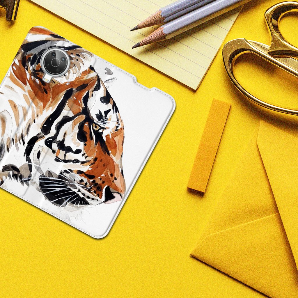 Omdat we tijgers zo bijzonder vinden, hebben we besloten deze voor zeer lage kosten voor jou op een Nokia G10 | G20 Bookcase te zetten. Dit kunnen we goedkoop doen omdat we het drukwerk in eigen beheer doen. De tijger staat geschilderd op de stand case tegen een grijs met wit geblokte achtergrond. De Watercolor Tiger kunnen we bedrukken op verschillende soorten hoesjes, zoals deze stand cases. Het hoesje met geschilderde tijger tegen grijs met witte achtergrond is van PU-leer (buitenzijde) en TPU (binnenzijde) en beschikt een houder voor bijvoorbeeld je bankpas. Verder is de stand case met geschilderde tijger voorzien van een magnetische sluiting aan de binnenzijde. Jij zorgt voor de perfecte bescherming van je smartphone met dit stand hoesje met geschilderde tijger tegen een grijs met witte achtergrond.