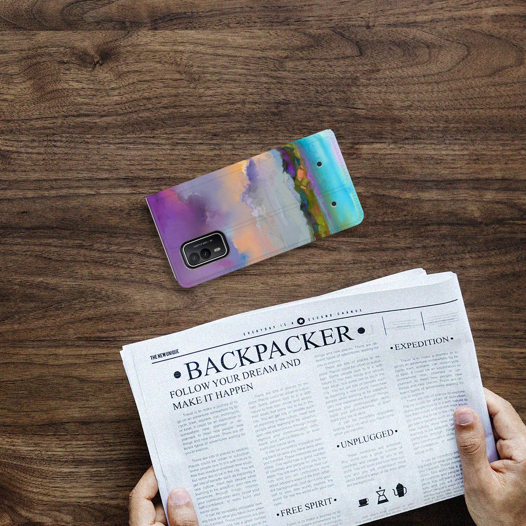 Het mooie ontwerp op dit hoesje zou je zo aan de muur willen hangen. Dit abstracte ‘schilderij’ van een bootje op een meer valt op vanwege de prachtige tinten blauw en paars. Een prachtig hoesje voor de liefhebber van kunst, boten en landschappen. Met een Bookcase is je Nokia XR21 goed beschermd. Dit populaire smartphonehoesje heeft één vakje voor een pasje of briefgeld en is aan alle zijden bedrukt. Met de standcase zet je je telefoon gemakkelijk neer, zodat je je handen vrij hebt als je bijvoorbeeld een video wilt kijken. De binnenkant van de standcase is van grijs PU-leer. Dat is fijn, omdat je daardoor niet snel vlekken ziet op je hoesje.
