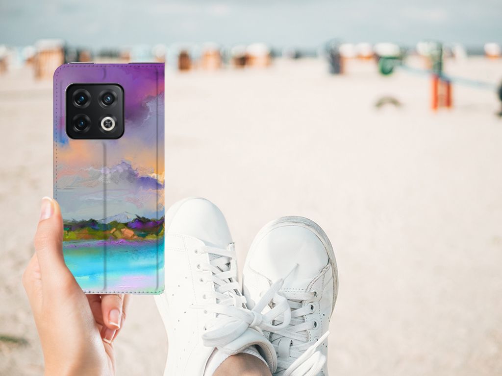Het mooie ontwerp op dit hoesje zou je zo aan de muur willen hangen. Dit abstracte ‘schilderij’ van een bootje op een meer valt op vanwege de prachtige tinten blauw en paars. Een prachtig hoesje voor de liefhebber van kunst, boten en landschappen. Met een Bookcase is je OnePlus 10 Pro goed beschermd. Dit populaire smartphonehoesje heeft één vakje voor een pasje of briefgeld en is aan alle zijden bedrukt. Met de standcase zet je je telefoon gemakkelijk neer, zodat je je handen vrij hebt als je bijvoorbeeld een video wilt kijken. De binnenkant van de standcase is van grijs PU-leer. Dat is fijn, omdat je daardoor niet snel vlekken ziet op je hoesje.