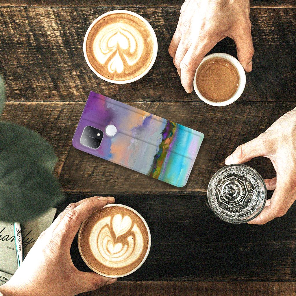 Het mooie ontwerp op dit hoesje zou je zo aan de muur willen hangen. Dit abstracte ‘schilderij’ van een bootje op een meer valt op vanwege de prachtige tinten blauw en paars. Een prachtig hoesje voor de liefhebber van kunst, boten en landschappen. Met een Bookcase is je OPPO A15 goed beschermd. Dit populaire smartphonehoesje heeft één vakje voor een pasje of briefgeld en is aan alle zijden bedrukt. Met de standcase zet je je telefoon gemakkelijk neer, zodat je je handen vrij hebt als je bijvoorbeeld een video wilt kijken. De binnenkant van de standcase is van grijs PU-leer. Dat is fijn, omdat je daardoor niet snel vlekken ziet op je hoesje.