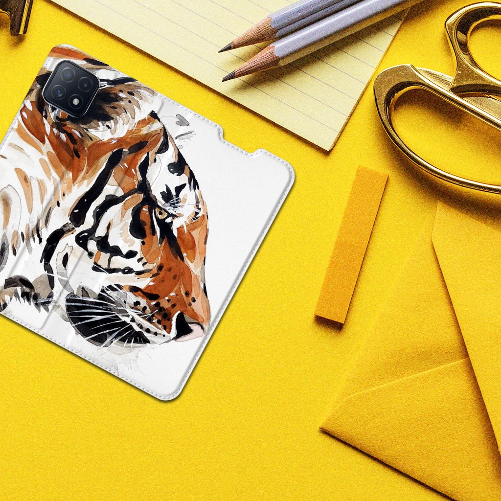 Omdat we tijgers zo bijzonder vinden, hebben we besloten deze voor zeer lage kosten voor jou op een OPPO A73 5G Bookcase te zetten. Dit kunnen we goedkoop doen omdat we het drukwerk in eigen beheer doen. De tijger staat geschilderd op de stand case tegen een grijs met wit geblokte achtergrond. De Watercolor Tiger kunnen we bedrukken op verschillende soorten hoesjes, zoals deze stand cases. Het hoesje met geschilderde tijger tegen grijs met witte achtergrond is van PU-leer (buitenzijde) en TPU (binnenzijde) en beschikt een houder voor bijvoorbeeld je bankpas. Verder is de stand case met geschilderde tijger voorzien van een magnetische sluiting aan de binnenzijde. Jij zorgt voor de perfecte bescherming van je smartphone met dit stand hoesje met geschilderde tijger tegen een grijs met witte achtergrond.