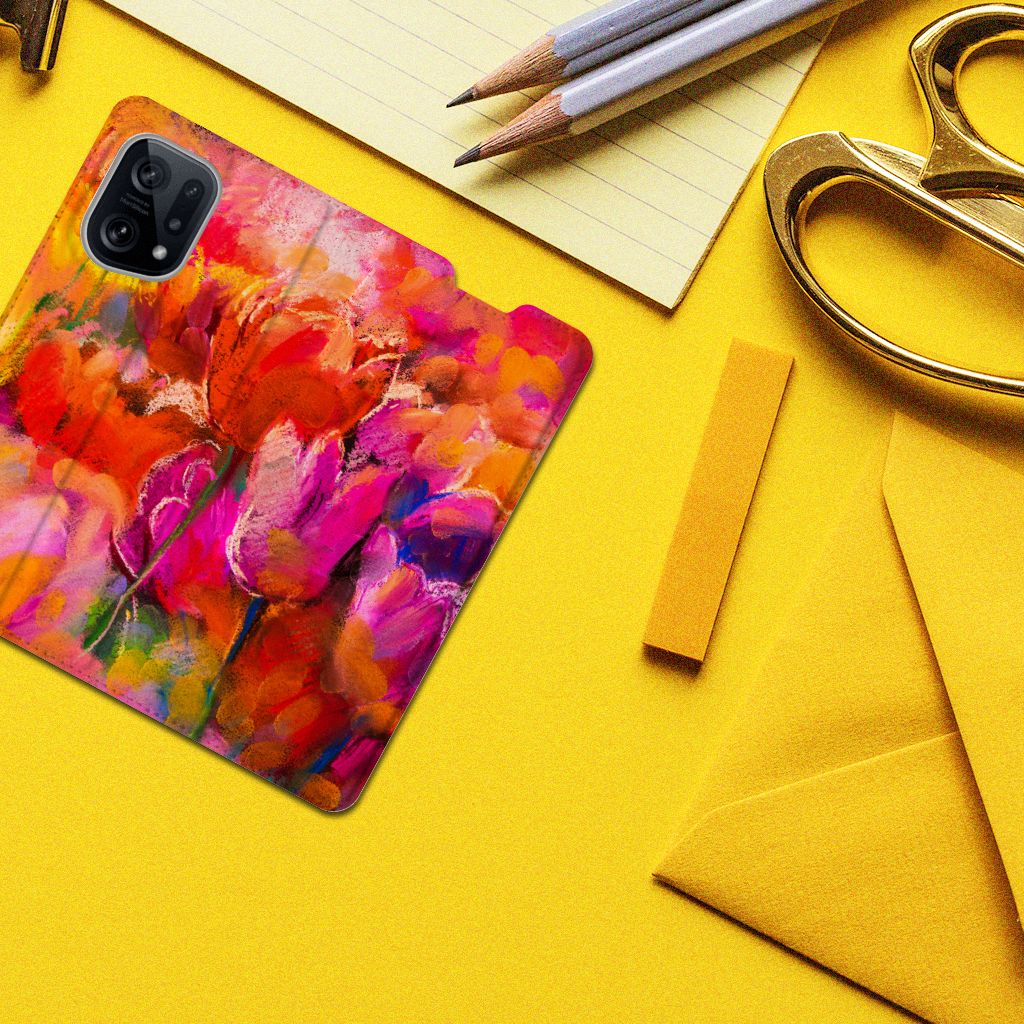 Ben je op zoek naar een uniek telefoonhoesje voor je OPPO Find X5? Dan ben je bij B2C Telecom aan het juiste adres! Speciaal voor jou hebben we dit prachtige Tulips design in onze collectie hoesjes opgenomen. Het design wordt bedrukt op een Bookcase en heeft een vakje aan de binnenkant voor een pasje. Het fijne aan dit hoesje is dat je het als standaard neer kunt zetten. Hierdoor geniet je nog meer als je een filmpje aan het kijken bent op je telefoon. Het hoesje wordt afgesloten door magneten aan de binnenkant. Wil je dit design hoesje nog iets extra's geven? Voeg dan gratis je naam of een quote toe! Is dit design hoesje toch niet helemaal wat je zocht? Ontwerp dan zelf een hoesje in ons ontwerpprogramma.
