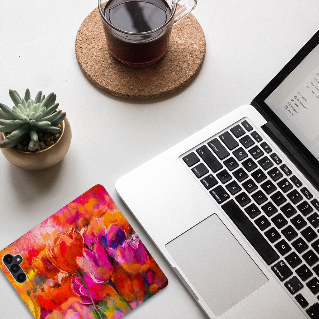 Ben je op zoek naar een uniek telefoonhoesje voor je Samsung Galaxy A05s? Dan ben je bij B2C Telecom aan het juiste adres! Speciaal voor jou hebben we dit prachtige Tulips design in onze collectie hoesjes opgenomen. Het design wordt bedrukt op een Bookcase en heeft een vakje aan de binnenkant voor een pasje. Het fijne aan dit hoesje is dat je het als standaard neer kunt zetten. Hierdoor geniet je nog meer als je een filmpje aan het kijken bent op je telefoon. Het hoesje wordt afgesloten door magneten aan de binnenkant. Wil je dit design hoesje nog iets extra's geven? Voeg dan gratis je naam of een quote toe! Is dit design hoesje toch niet helemaal wat je zocht? Ontwerp dan zelf een hoesje in ons ontwerpprogramma.