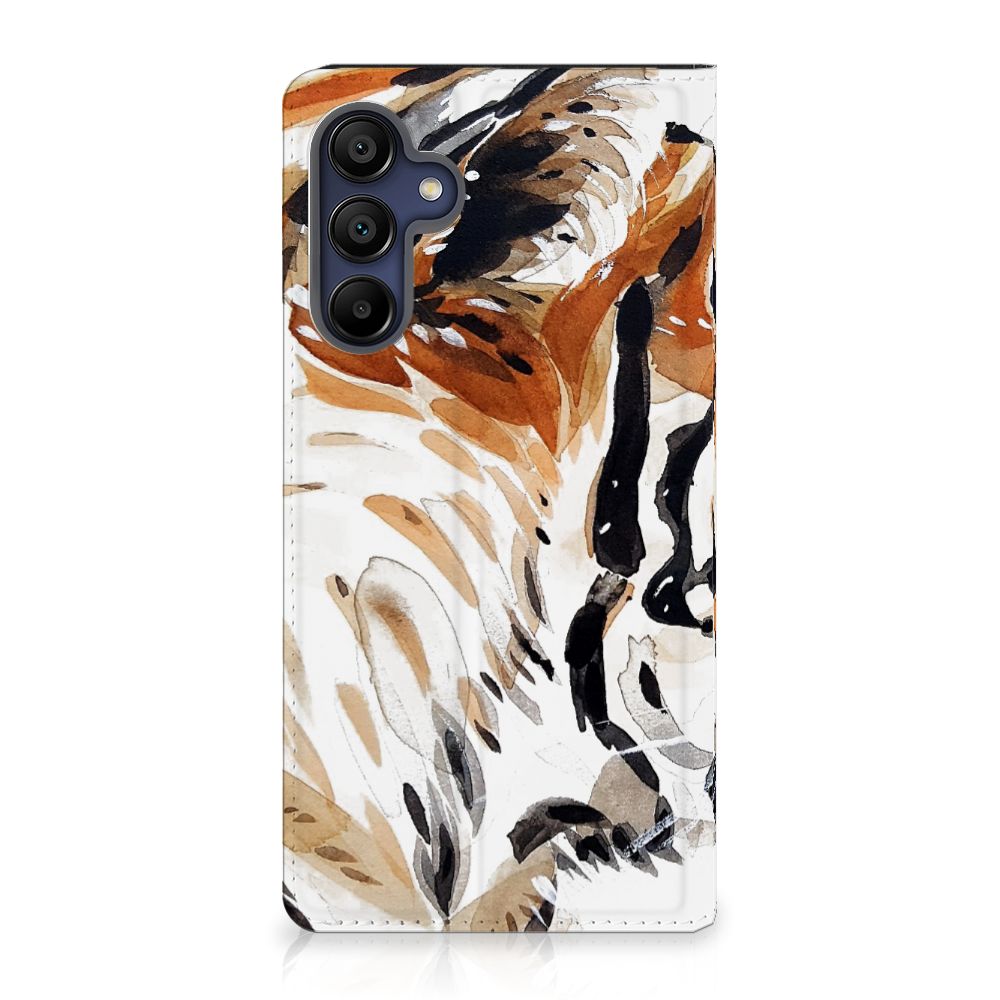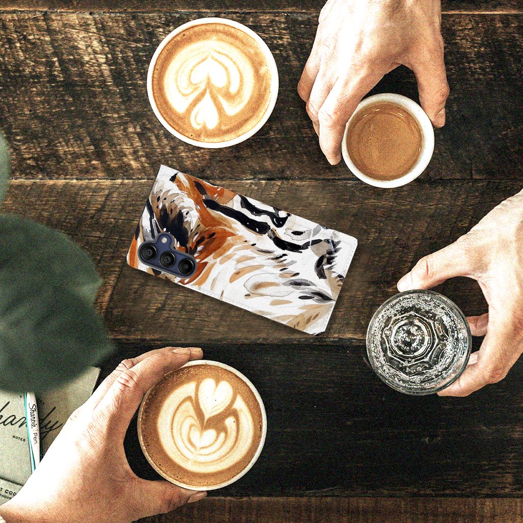 Omdat we tijgers zo bijzonder vinden, hebben we besloten deze voor zeer lage kosten voor jou op een Samsung Galaxy A15 Bookcase te zetten. Dit kunnen we goedkoop doen omdat we het drukwerk in eigen beheer doen. De tijger staat geschilderd op de stand case tegen een grijs met wit geblokte achtergrond. De Watercolor Tiger kunnen we bedrukken op verschillende soorten hoesjes, zoals deze stand cases. Het hoesje met geschilderde tijger tegen grijs met witte achtergrond is van PU-leer (buitenzijde) en TPU (binnenzijde) en beschikt een houder voor bijvoorbeeld je bankpas. Verder is de stand case met geschilderde tijger voorzien van een magnetische sluiting aan de binnenzijde. Jij zorgt voor de perfecte bescherming van je smartphone met dit stand hoesje met geschilderde tijger tegen een grijs met witte achtergrond.