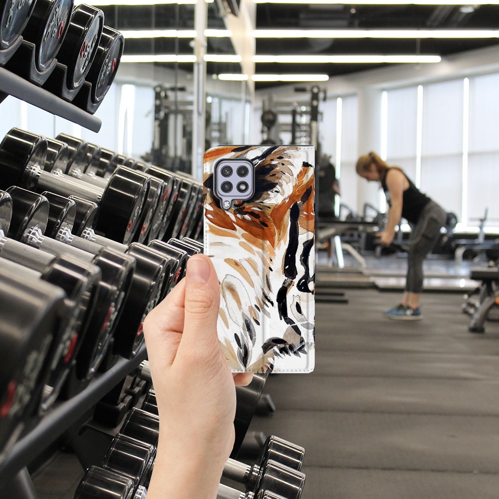Omdat we tijgers zo bijzonder vinden, hebben we besloten deze voor zeer lage kosten voor jou op een Samsung Galaxy A22 4G | M22 Bookcase te zetten. Dit kunnen we goedkoop doen omdat we het drukwerk in eigen beheer doen. De tijger staat geschilderd op de stand case tegen een grijs met wit geblokte achtergrond. De Watercolor Tiger kunnen we bedrukken op verschillende soorten hoesjes, zoals deze stand cases. Het hoesje met geschilderde tijger tegen grijs met witte achtergrond is van PU-leer (buitenzijde) en TPU (binnenzijde) en beschikt een houder voor bijvoorbeeld je bankpas. Verder is de stand case met geschilderde tijger voorzien van een magnetische sluiting aan de binnenzijde. Jij zorgt voor de perfecte bescherming van je smartphone met dit stand hoesje met geschilderde tijger tegen een grijs met witte achtergrond.