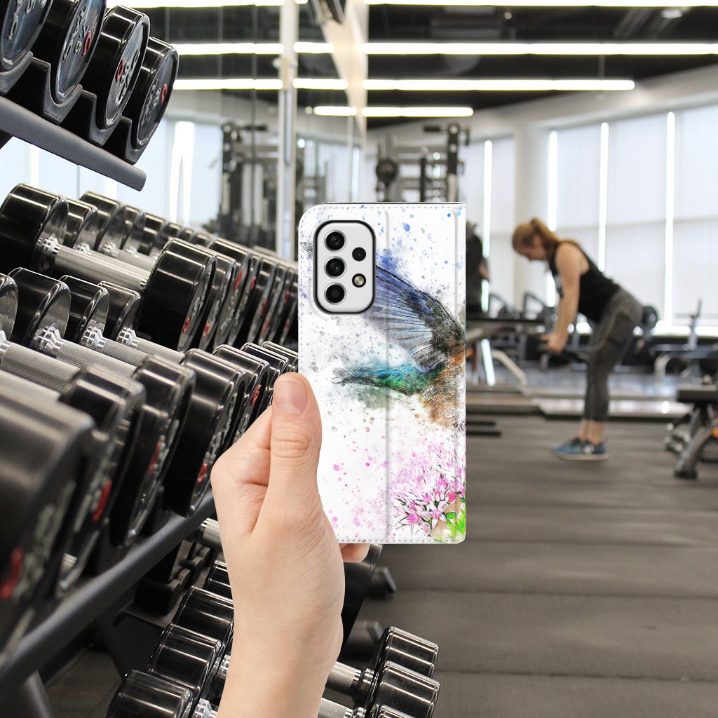 Voel jij je ook zo vrij als deze Vogel, die neerstrijkt op deze stuifmeel veroorzakende bloemensoort? Bestel dan dit schitterende design Bookcase, dat met veel gevoel voor artistiek is ontworpen. Stuifmeel van verscheidene boomsoorten, grassen en andere kruiden kan overigens gezondheidsklachten opleveren, in eerste instantie veelal via hooikoorts. Indien je jouw smartphone beschermt met dit hoesje, zal het zeker geen schade oplopen. Op de koop toe ziet er je Samsung Galaxy A23 er ook nog eens zeer hip en cool uit. Dit toffe hoesje is met veel plezier ontworpen, speciaal voor jou. Wacht daarom niet langer en bestel vliegensvlug deze geweldige case. Het design staat op een stand case. Deze case beschermt jouw telefoon aan alle kanten en beschikt over een 1 opbergvakje en een speciale standaard. Het hoesje wordt afgesloten met een magneet aan de binnenzijde. De houder aan de binnenzijde is van TPU. Alle zijden van de stand case worden bedrukt.