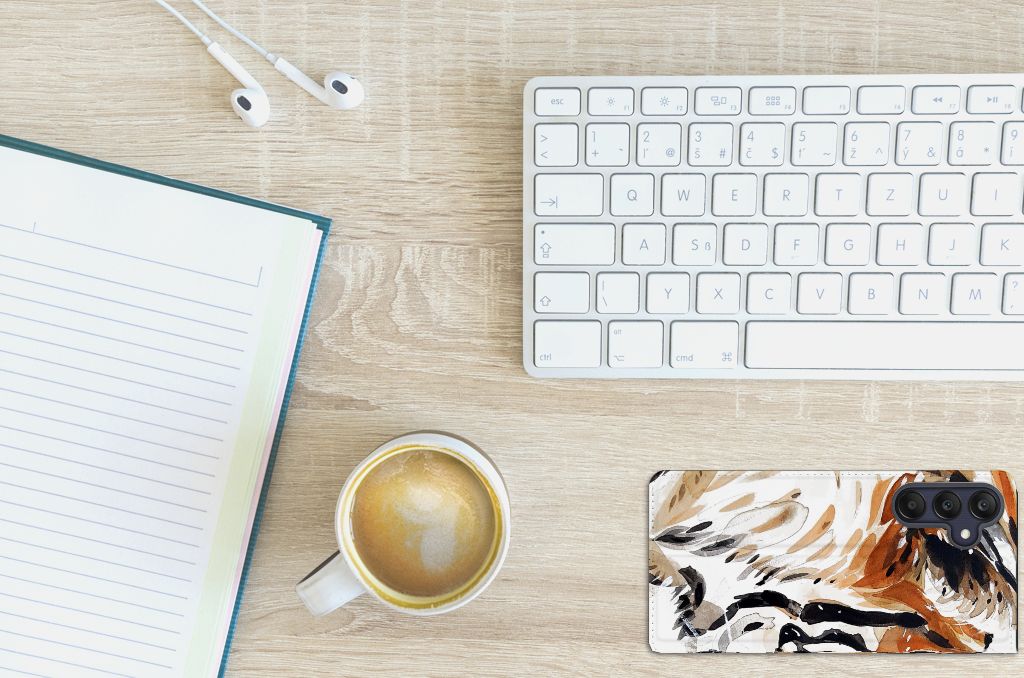 Omdat we tijgers zo bijzonder vinden, hebben we besloten deze voor zeer lage kosten voor jou op een Samsung Galaxy A25 Bookcase te zetten. Dit kunnen we goedkoop doen omdat we het drukwerk in eigen beheer doen. De tijger staat geschilderd op de stand case tegen een grijs met wit geblokte achtergrond. De Watercolor Tiger kunnen we bedrukken op verschillende soorten hoesjes, zoals deze stand cases. Het hoesje met geschilderde tijger tegen grijs met witte achtergrond is van PU-leer (buitenzijde) en TPU (binnenzijde) en beschikt een houder voor bijvoorbeeld je bankpas. Verder is de stand case met geschilderde tijger voorzien van een magnetische sluiting aan de binnenzijde. Jij zorgt voor de perfecte bescherming van je smartphone met dit stand hoesje met geschilderde tijger tegen een grijs met witte achtergrond.