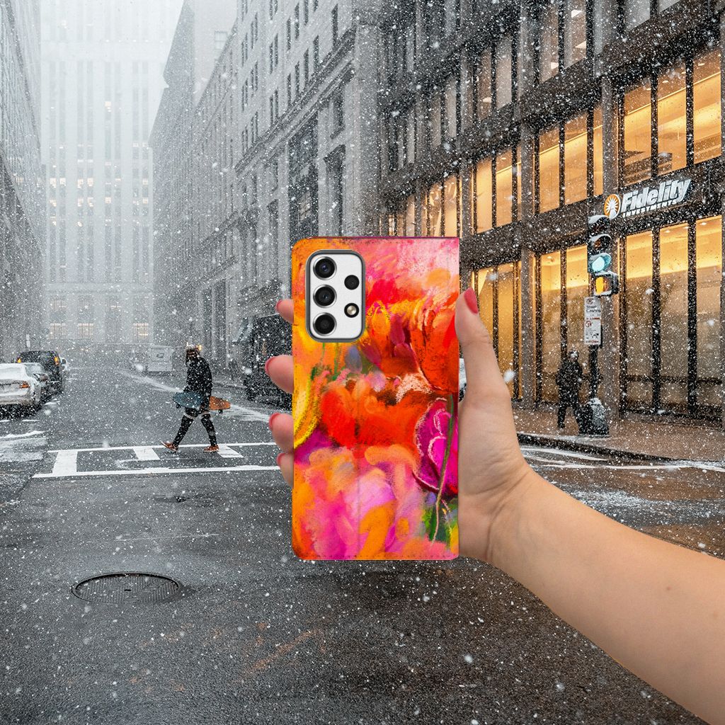 Ben je op zoek naar een uniek telefoonhoesje voor je Samsung Galaxy A53? Dan ben je bij B2C Telecom aan het juiste adres! Speciaal voor jou hebben we dit prachtige Tulips design in onze collectie hoesjes opgenomen. Het design wordt bedrukt op een Bookcase en heeft een vakje aan de binnenkant voor een pasje. Het fijne aan dit hoesje is dat je het als standaard neer kunt zetten. Hierdoor geniet je nog meer als je een filmpje aan het kijken bent op je telefoon. Het hoesje wordt afgesloten door magneten aan de binnenkant. Wil je dit design hoesje nog iets extra's geven? Voeg dan gratis je naam of een quote toe! Is dit design hoesje toch niet helemaal wat je zocht? Ontwerp dan zelf een hoesje in ons ontwerpprogramma.