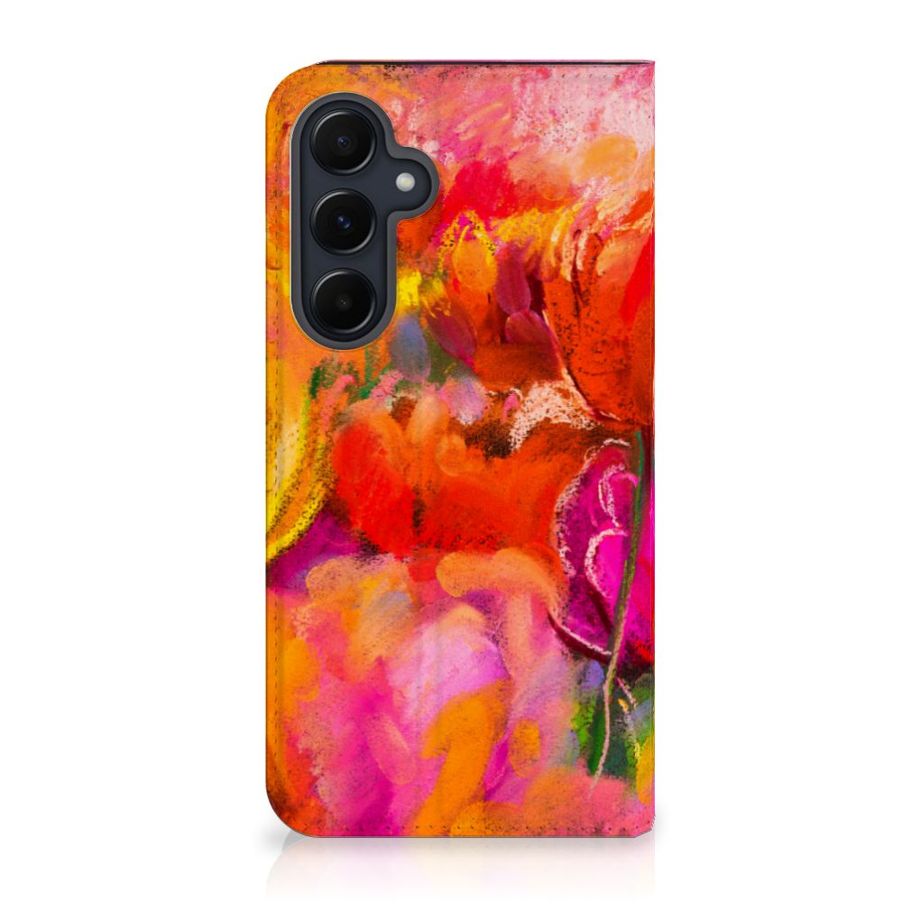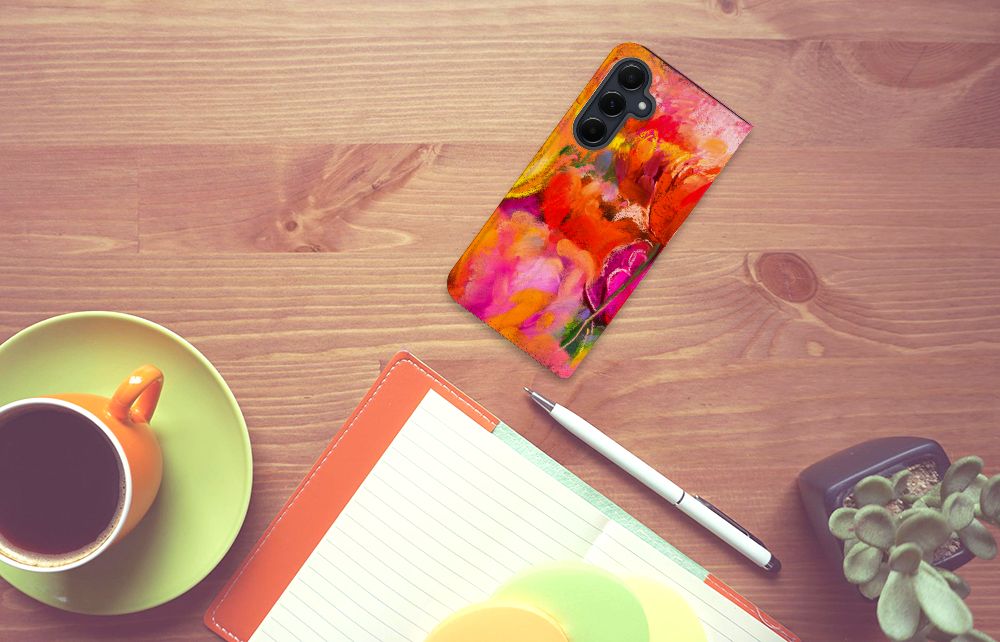 Ben je op zoek naar een uniek telefoonhoesje voor je Samsung Galaxy A55? Dan ben je bij B2C Telecom aan het juiste adres! Speciaal voor jou hebben we dit prachtige Tulips design in onze collectie hoesjes opgenomen. Het design wordt bedrukt op een Bookcase en heeft een vakje aan de binnenkant voor een pasje. Het fijne aan dit hoesje is dat je het als standaard neer kunt zetten. Hierdoor geniet je nog meer als je een filmpje aan het kijken bent op je telefoon. Het hoesje wordt afgesloten door magneten aan de binnenkant. Wil je dit design hoesje nog iets extra's geven? Voeg dan gratis je naam of een quote toe! Is dit design hoesje toch niet helemaal wat je zocht? Ontwerp dan zelf een hoesje in ons ontwerpprogramma.
