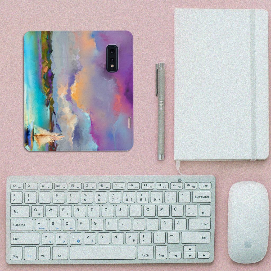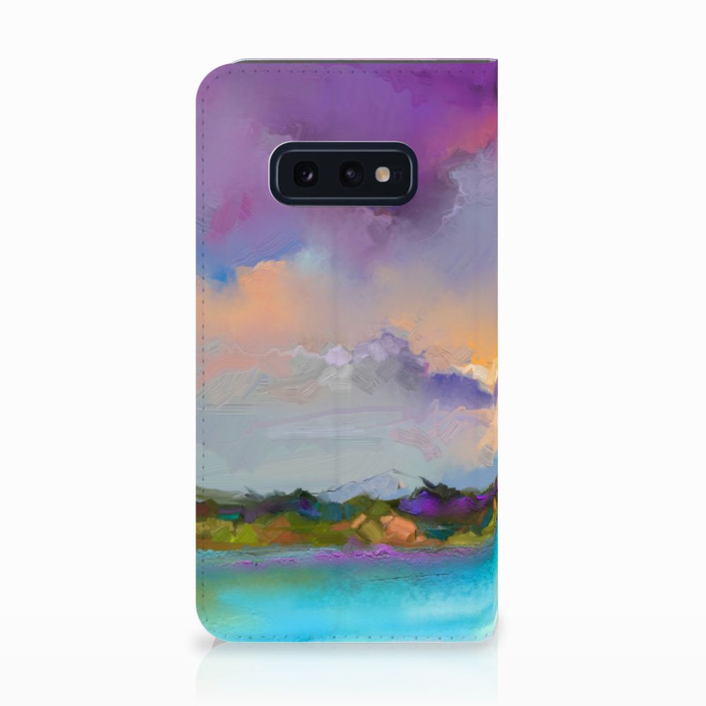 Het mooie ontwerp op dit hoesje zou je zo aan de muur willen hangen. Dit abstracte ‘schilderij’ van een bootje op een meer valt op vanwege de prachtige tinten blauw en paars. Een prachtig hoesje voor de liefhebber van kunst, boten en landschappen. Met een Bookcase is je Samsung Galaxy S10e goed beschermd. Dit populaire smartphonehoesje heeft één vakje voor een pasje of briefgeld en is aan alle zijden bedrukt. Met de standcase zet je je telefoon gemakkelijk neer, zodat je je handen vrij hebt als je bijvoorbeeld een video wilt kijken. De binnenkant van de standcase is van grijs PU-leer. Dat is fijn, omdat je daardoor niet snel vlekken ziet op je hoesje.