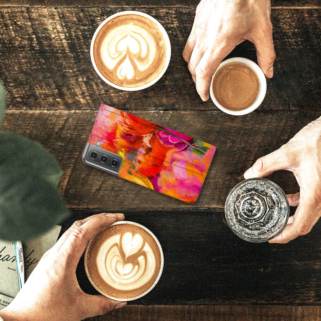 Samsung Galaxy S21 FE Hoesje Orchidee Blauw - Cadeau voor je Moeder