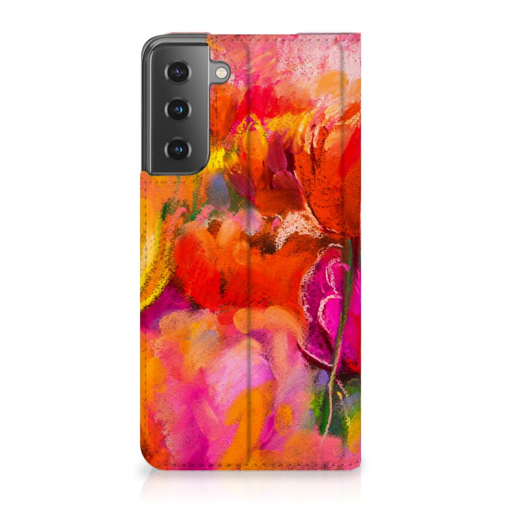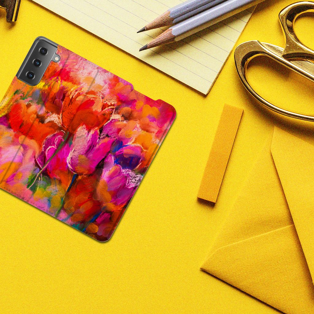 Ben je op zoek naar een uniek telefoonhoesje voor je Samsung Galaxy S21? Dan ben je bij B2C Telecom aan het juiste adres! Speciaal voor jou hebben we dit prachtige Tulips design in onze collectie hoesjes opgenomen. Het design wordt bedrukt op een Bookcase en heeft een vakje aan de binnenkant voor een pasje. Het fijne aan dit hoesje is dat je het als standaard neer kunt zetten. Hierdoor geniet je nog meer als je een filmpje aan het kijken bent op je telefoon. Het hoesje wordt afgesloten door magneten aan de binnenkant. Wil je dit design hoesje nog iets extra's geven? Voeg dan gratis je naam of een quote toe! Is dit design hoesje toch niet helemaal wat je zocht? Ontwerp dan zelf een hoesje in ons ontwerpprogramma.