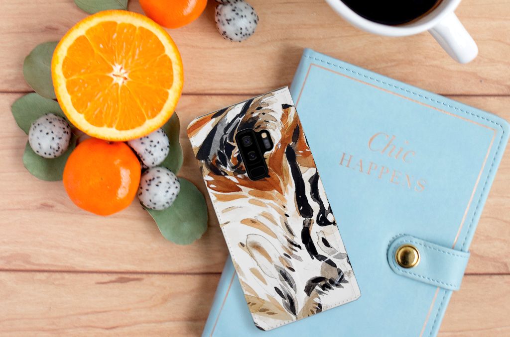 Omdat we tijgers zo bijzonder vinden, hebben we besloten deze voor zeer lage kosten voor jou op een Samsung Galaxy S9 Plus Bookcase te zetten. Dit kunnen we goedkoop doen omdat we het drukwerk in eigen beheer doen. De tijger staat geschilderd op de stand case tegen een grijs met wit geblokte achtergrond. De Watercolor Tiger kunnen we bedrukken op verschillende soorten hoesjes, zoals deze stand cases. Het hoesje met geschilderde tijger tegen grijs met witte achtergrond is van PU-leer (buitenzijde) en TPU (binnenzijde) en beschikt een houder voor bijvoorbeeld je bankpas. Verder is de stand case met geschilderde tijger voorzien van een magnetische sluiting aan de binnenzijde. Jij zorgt voor de perfecte bescherming van je smartphone met dit stand hoesje met geschilderde tijger tegen een grijs met witte achtergrond.
