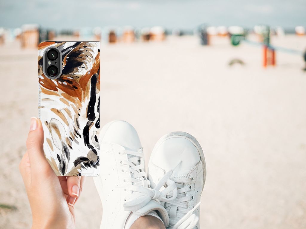 Omdat we tijgers zo bijzonder vinden, hebben we besloten deze voor zeer lage kosten voor jou op een Sony Xperia 5 V Bookcase te zetten. Dit kunnen we goedkoop doen omdat we het drukwerk in eigen beheer doen. De tijger staat geschilderd op de stand case tegen een grijs met wit geblokte achtergrond. De Watercolor Tiger kunnen we bedrukken op verschillende soorten hoesjes, zoals deze stand cases. Het hoesje met geschilderde tijger tegen grijs met witte achtergrond is van PU-leer (buitenzijde) en TPU (binnenzijde) en beschikt een houder voor bijvoorbeeld je bankpas. Verder is de stand case met geschilderde tijger voorzien van een magnetische sluiting aan de binnenzijde. Jij zorgt voor de perfecte bescherming van je smartphone met dit stand hoesje met geschilderde tijger tegen een grijs met witte achtergrond.