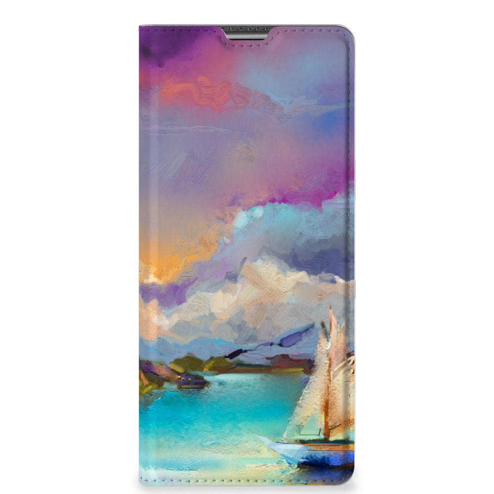 Het mooie ontwerp op dit hoesje zou je zo aan de muur willen hangen. Dit abstracte ‘schilderij’ van een bootje op een meer valt op vanwege de prachtige tinten blauw en paars. Een prachtig hoesje voor de liefhebber van kunst, boten en landschappen. Met een Bookcase is je Sony Xperia L4 goed beschermd. Dit populaire smartphonehoesje heeft één vakje voor een pasje of briefgeld en is aan alle zijden bedrukt. Met de standcase zet je je telefoon gemakkelijk neer, zodat je je handen vrij hebt als je bijvoorbeeld een video wilt kijken. De binnenkant van de standcase is van grijs PU-leer. Dat is fijn, omdat je daardoor niet snel vlekken ziet op je hoesje.