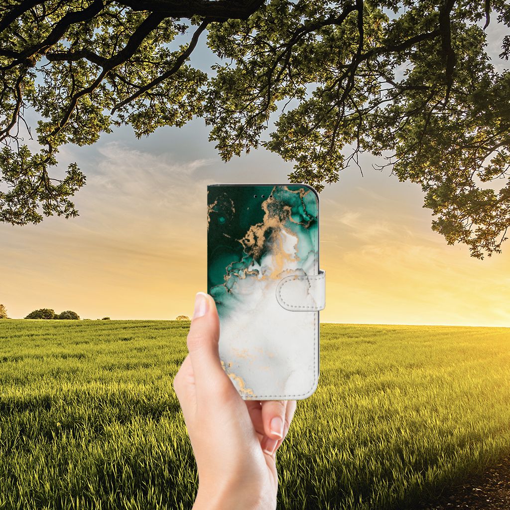 Wist je dat het design marmer zwart het meest verkochte hoesje is? Om onze collectie stenen uit te breiden hebben we het design marmer groen toegevoegd om jouw Apple iPhone 13 nog meer op te laten vallen. Dit marmer groene design wordt geprint op een Bookcase waarin je drie pasjes kwijt kunt. Het hoesje wordt afgesloten met een sluit lipje, waardoor jouw telefoon altijd goed beschermd is. Bescherm je Apple iPhone 13 vandaag nog met dit toffe marmer design hoesje!