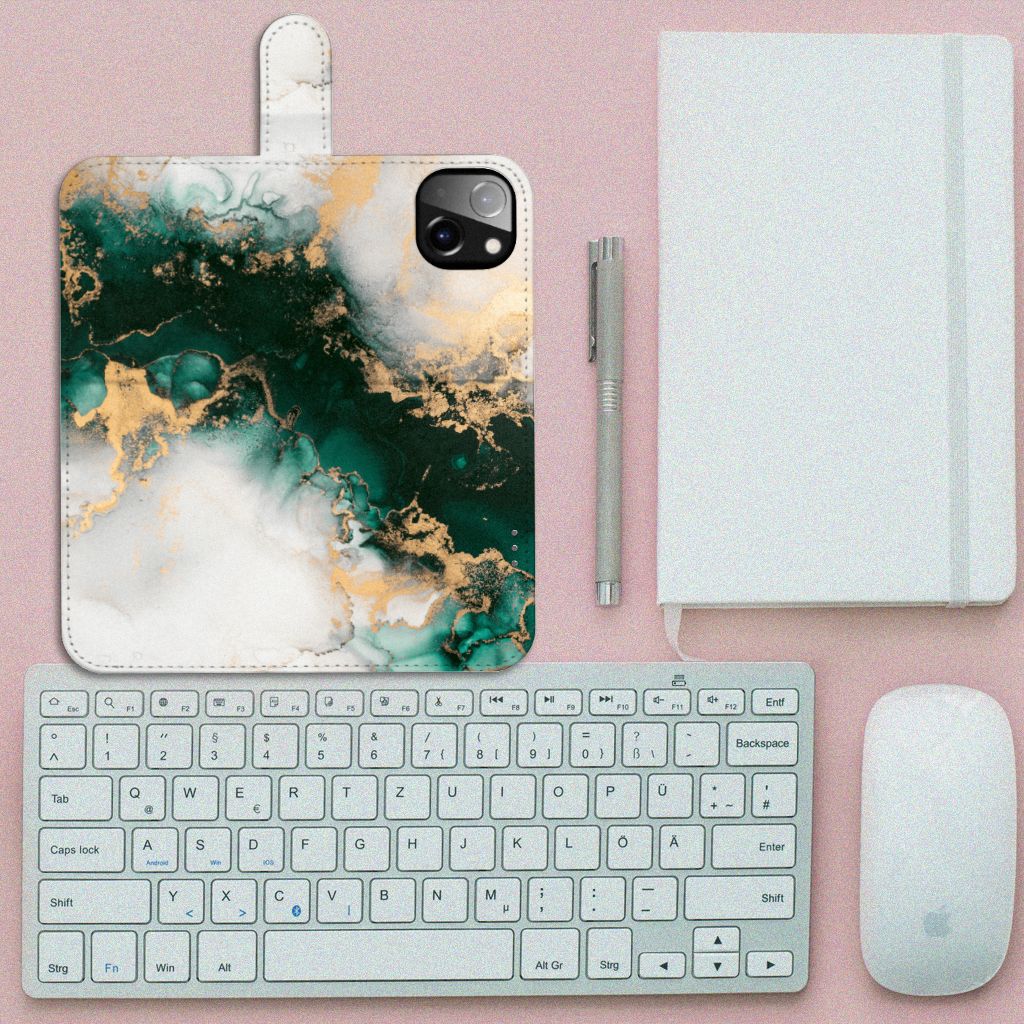 Wist je dat het design marmer zwart het meest verkochte hoesje is? Om onze collectie stenen uit te breiden hebben we het design marmer groen toegevoegd om jouw iPhone 14 Plus nog meer op te laten vallen. Dit marmer groene design wordt geprint op een Bookcase waarin je drie pasjes kwijt kunt. Het hoesje wordt afgesloten met een sluit lipje, waardoor jouw telefoon altijd goed beschermd is. Bescherm je iPhone 14 Plus vandaag nog met dit toffe marmer design hoesje!