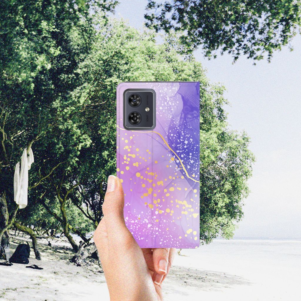 Wauw! Hoe mooi is dit watercolor hoesje in het paars? Super mooi toch! Wij garanderen jou 100% dat jouw Motorola Moto G54 opvalt! Dit design wordt geprint op een Bookcase waarin je een pasje kwijt kunt. Vouw het hoesje om en zet het horizontaal neer voor als je graag filmpjes op je Motorola Moto G54 kijkt. De magneten aan de binnenkant zorgen ervoor dat het hoesje dicht blijft in bijv. je tas. Bescherm jouw smartphone vandaag nog met dit watercolor design hoesje!
