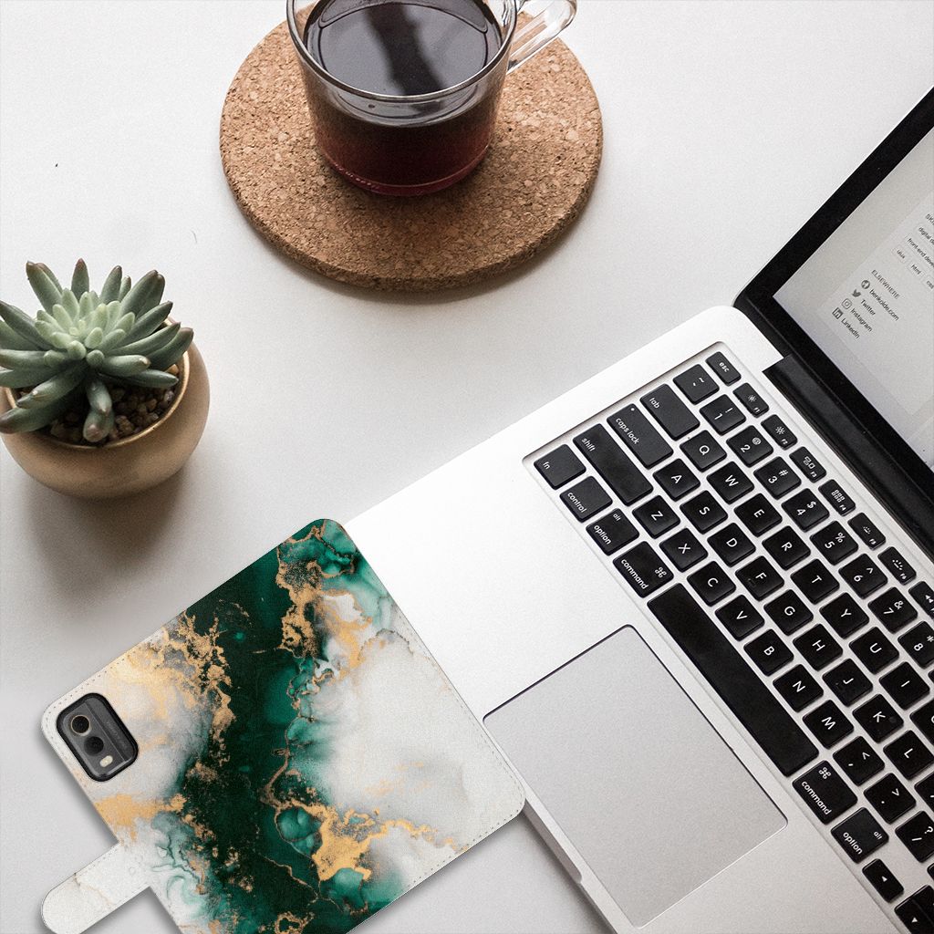 Wist je dat het design marmer zwart het meest verkochte hoesje is? Om onze collectie stenen uit te breiden hebben we het design marmer groen toegevoegd om jouw Nokia C32 nog meer op te laten vallen. Dit marmer groene design wordt geprint op een Bookcase waarin je drie pasjes kwijt kunt. Het hoesje wordt afgesloten met een sluit lipje, waardoor jouw telefoon altijd goed beschermd is. Bescherm je Nokia C32 vandaag nog met dit toffe marmer design hoesje!