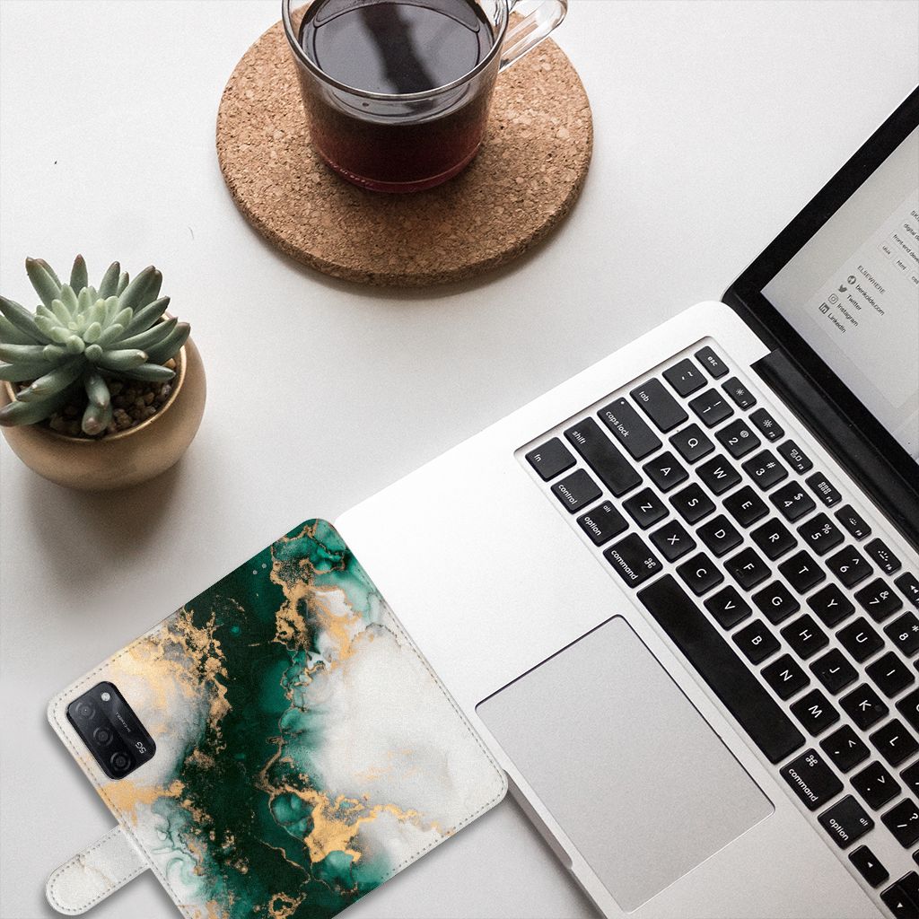 Wist je dat het design marmer zwart het meest verkochte hoesje is? Om onze collectie stenen uit te breiden hebben we het design marmer groen toegevoegd om jouw OPPO A16/A16s/A54s nog meer op te laten vallen. Dit marmer groene design wordt geprint op een Bookcase waarin je drie pasjes kwijt kunt. Het hoesje wordt afgesloten met een sluit lipje, waardoor jouw telefoon altijd goed beschermd is. Bescherm je OPPO A16/A16s/A54s vandaag nog met dit toffe marmer design hoesje!