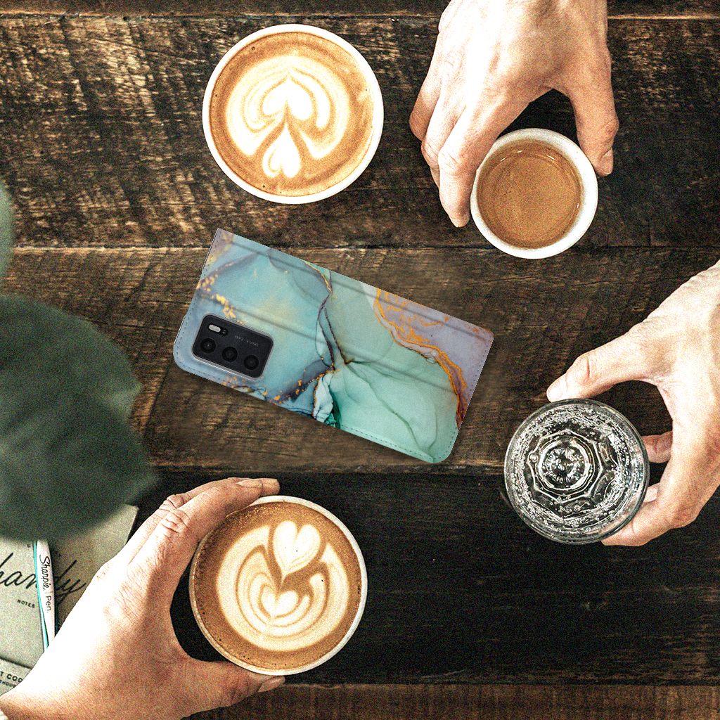 OPPO A54s | A16 | A16s Standcase Marmer Wit Zwart - Origineel Cadeau Man