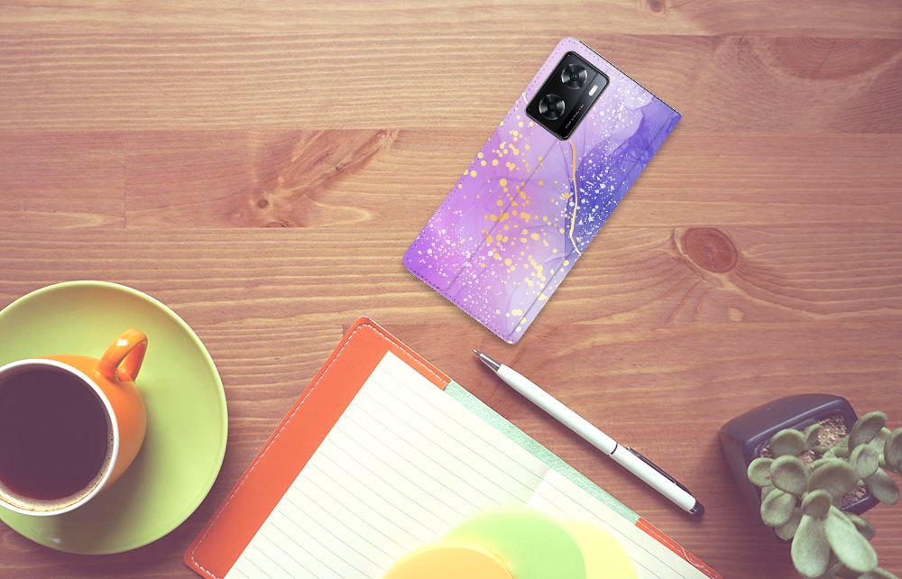 Wauw! Hoe mooi is dit watercolor hoesje in het paars? Super mooi toch! Wij garanderen jou 100% dat jouw OPPO A57 | A57s | A77 4G opvalt! Dit design wordt geprint op een Bookcase waarin je een pasje kwijt kunt. Vouw het hoesje om en zet het horizontaal neer voor als je graag filmpjes op je OPPO A57 | A57s | A77 4G kijkt. De magneten aan de binnenkant zorgen ervoor dat het hoesje dicht blijft in bijv. je tas. Bescherm jouw smartphone vandaag nog met dit watercolor design hoesje!