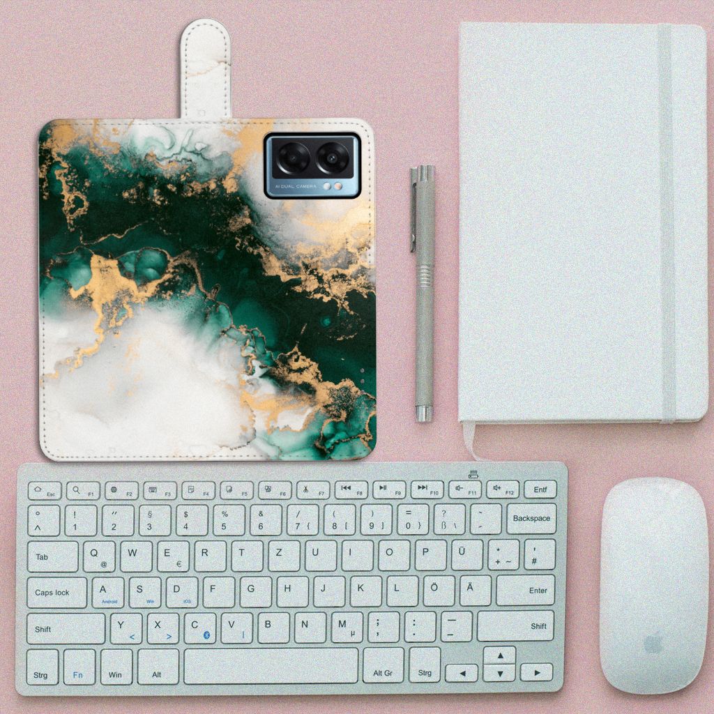 Wist je dat het design marmer zwart het meest verkochte hoesje is? Om onze collectie stenen uit te breiden hebben we het design marmer groen toegevoegd om jouw OPPO A77 5G | A57 5G nog meer op te laten vallen. Dit marmer groene design wordt geprint op een Bookcase waarin je drie pasjes kwijt kunt. Het hoesje wordt afgesloten met een sluit lipje, waardoor jouw telefoon altijd goed beschermd is. Bescherm je OPPO A77 5G | A57 5G vandaag nog met dit toffe marmer design hoesje!