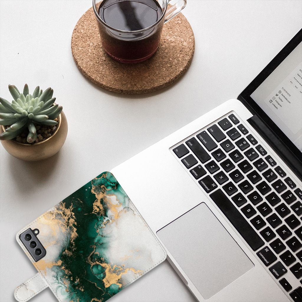Wist je dat het design marmer zwart het meest verkochte hoesje is? Om onze collectie stenen uit te breiden hebben we het design marmer groen toegevoegd om jouw Samsung Galaxy S21 FE nog meer op te laten vallen. Dit marmer groene design wordt geprint op een Bookcase waarin je drie pasjes kwijt kunt. Het hoesje wordt afgesloten met een sluit lipje, waardoor jouw telefoon altijd goed beschermd is. Bescherm je Samsung Galaxy S21 FE vandaag nog met dit toffe marmer design hoesje!