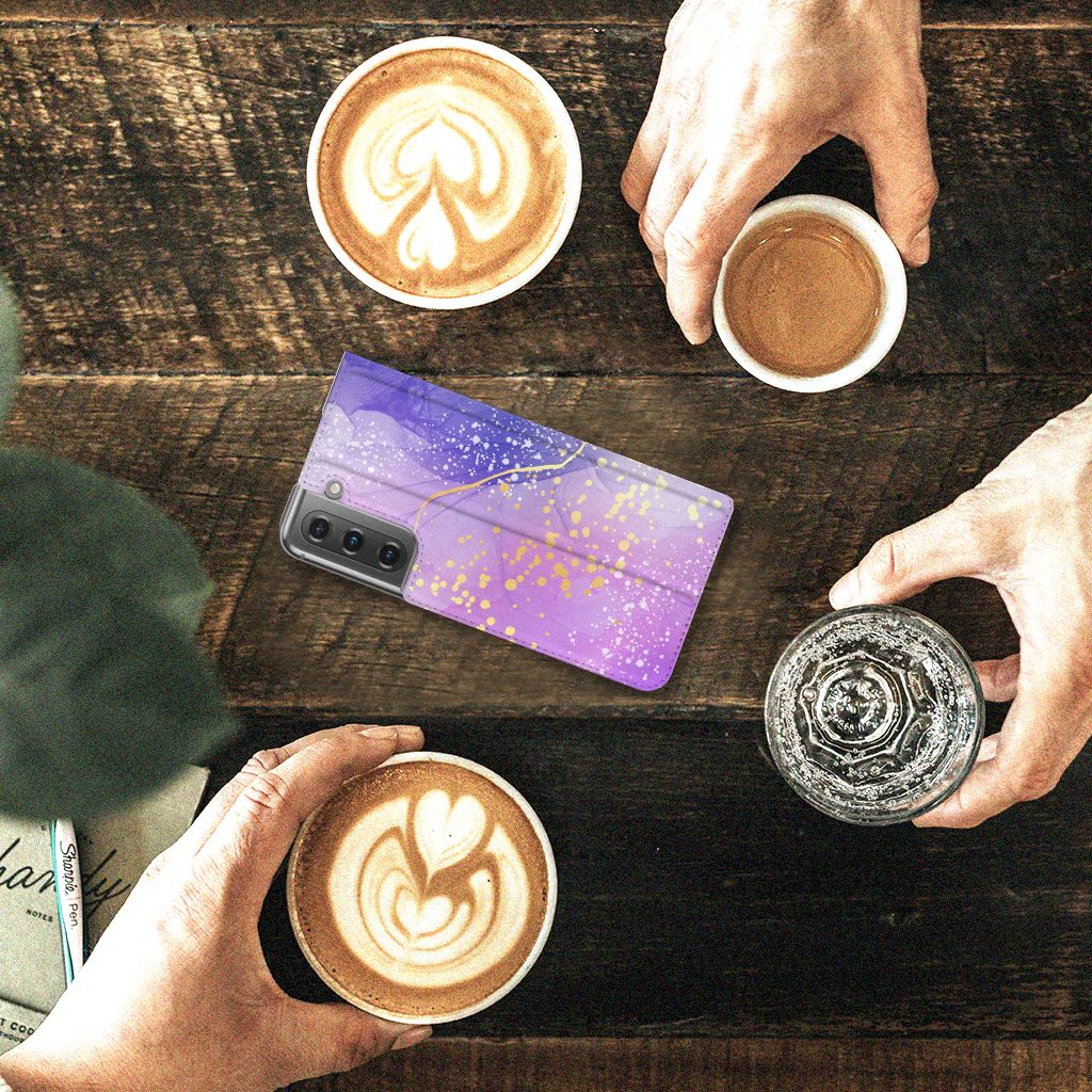 Wauw! Hoe mooi is dit watercolor hoesje in het paars? Super mooi toch! Wij garanderen jou 100% dat jouw Samsung Galaxy S21 FE opvalt! Dit design wordt geprint op een Bookcase waarin je een pasje kwijt kunt. Vouw het hoesje om en zet het horizontaal neer voor als je graag filmpjes op je Samsung Galaxy S21 FE kijkt. De magneten aan de binnenkant zorgen ervoor dat het hoesje dicht blijft in bijv. je tas. Bescherm jouw smartphone vandaag nog met dit watercolor design hoesje!