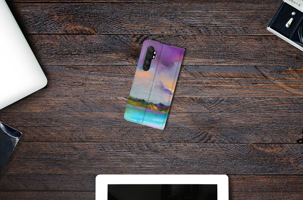 Het mooie ontwerp op dit hoesje zou je zo aan de muur willen hangen. Dit abstracte ‘schilderij’ van een bootje op een meer valt op vanwege de prachtige tinten blauw en paars. Een prachtig hoesje voor de liefhebber van kunst, boten en landschappen. Met een Bookcase is je Xiaomi Mi Note 10 Lite goed beschermd. Dit populaire smartphonehoesje heeft één vakje voor een pasje of briefgeld en is aan alle zijden bedrukt. Met de standcase zet je je telefoon gemakkelijk neer, zodat je je handen vrij hebt als je bijvoorbeeld een video wilt kijken. De binnenkant van de standcase is van grijs PU-leer. Dat is fijn, omdat je daardoor niet snel vlekken ziet op je hoesje.