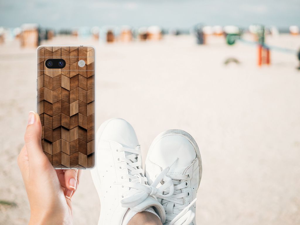 Onze houten hoesjes, niet letterlijk natuurlijk, maar onze design hoesjes met een bedrukking van houtprint zijn erg populair. Daarom werd het tijd voor een uitbreiding van onze collectie houten hoesjes. Hoe tof is dit wooden cubes design? Gegarandeerd dat jij met een uniek hoesje rond loopt! Dit design wordt geprint op een Bumper Hoesje speciaal op maat gemaakt voor de Google Pixel 7A. Het ligt prettig in de hand en is licht van gewicht. Alleen de achterkant van je telefoon wordt beschermd. Daarom adviseren wij om dit hoesje in combinatie met een screenprotector te gebruiken. Bescherm jouw smartphone vandaag nog met dit toffe wooden cubes hoesje!