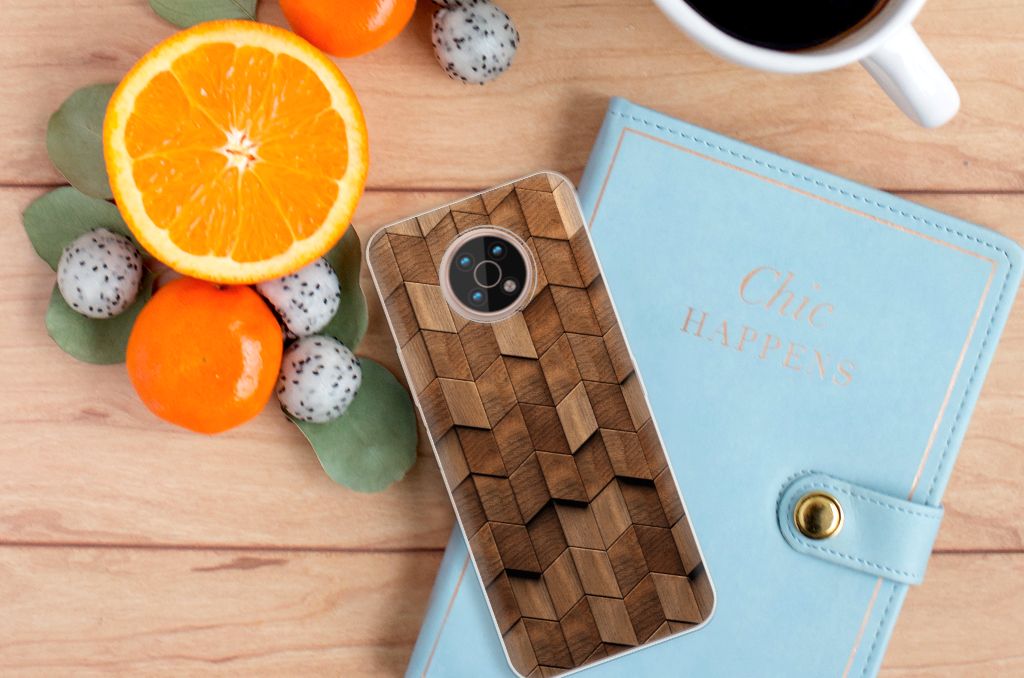 Onze houten hoesjes, niet letterlijk natuurlijk, maar onze design hoesjes met een bedrukking van houtprint zijn erg populair. Daarom werd het tijd voor een uitbreiding van onze collectie houten hoesjes. Hoe tof is dit wooden cubes design? Gegarandeerd dat jij met een uniek hoesje rond loopt! Dit design wordt geprint op een Bumper Hoesje speciaal op maat gemaakt voor de Nokia G50. Het ligt prettig in de hand en is licht van gewicht. Alleen de achterkant van je telefoon wordt beschermd. Daarom adviseren wij om dit hoesje in combinatie met een screenprotector te gebruiken. Bescherm jouw smartphone vandaag nog met dit toffe wooden cubes hoesje!
