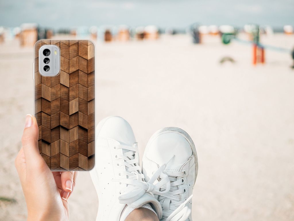 Onze houten hoesjes, niet letterlijk natuurlijk, maar onze design hoesjes met een bedrukking van houtprint zijn erg populair. Daarom werd het tijd voor een uitbreiding van onze collectie houten hoesjes. Hoe tof is dit wooden cubes design? Gegarandeerd dat jij met een uniek hoesje rond loopt! Dit design wordt geprint op een Bumper Hoesje speciaal op maat gemaakt voor de Nokia G60. Het ligt prettig in de hand en is licht van gewicht. Alleen de achterkant van je telefoon wordt beschermd. Daarom adviseren wij om dit hoesje in combinatie met een screenprotector te gebruiken. Bescherm jouw smartphone vandaag nog met dit toffe wooden cubes hoesje!