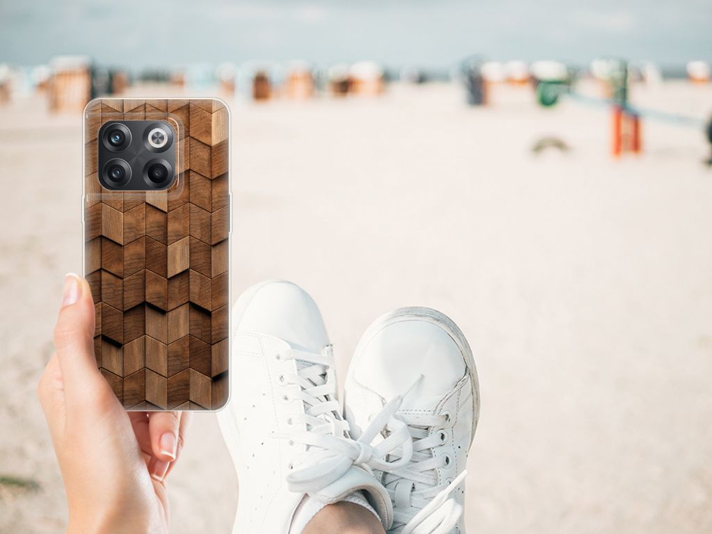 Onze houten hoesjes, niet letterlijk natuurlijk, maar onze design hoesjes met een bedrukking van houtprint zijn erg populair. Daarom werd het tijd voor een uitbreiding van onze collectie houten hoesjes. Hoe tof is dit wooden cubes design? Gegarandeerd dat jij met een uniek hoesje rond loopt! Dit design wordt geprint op een Bumper Hoesje speciaal op maat gemaakt voor de OnePlus 10T. Het ligt prettig in de hand en is licht van gewicht. Alleen de achterkant van je telefoon wordt beschermd. Daarom adviseren wij om dit hoesje in combinatie met een screenprotector te gebruiken. Bescherm jouw smartphone vandaag nog met dit toffe wooden cubes hoesje!