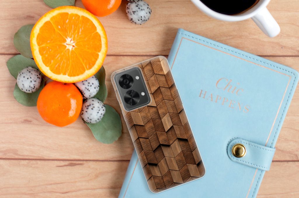 Onze houten hoesjes, niet letterlijk natuurlijk, maar onze design hoesjes met een bedrukking van houtprint zijn erg populair. Daarom werd het tijd voor een uitbreiding van onze collectie houten hoesjes. Hoe tof is dit wooden cubes design? Gegarandeerd dat jij met een uniek hoesje rond loopt! Dit design wordt geprint op een Bumper Hoesje speciaal op maat gemaakt voor de OnePlus Nord 2T. Het ligt prettig in de hand en is licht van gewicht. Alleen de achterkant van je telefoon wordt beschermd. Daarom adviseren wij om dit hoesje in combinatie met een screenprotector te gebruiken. Bescherm jouw smartphone vandaag nog met dit toffe wooden cubes hoesje!
