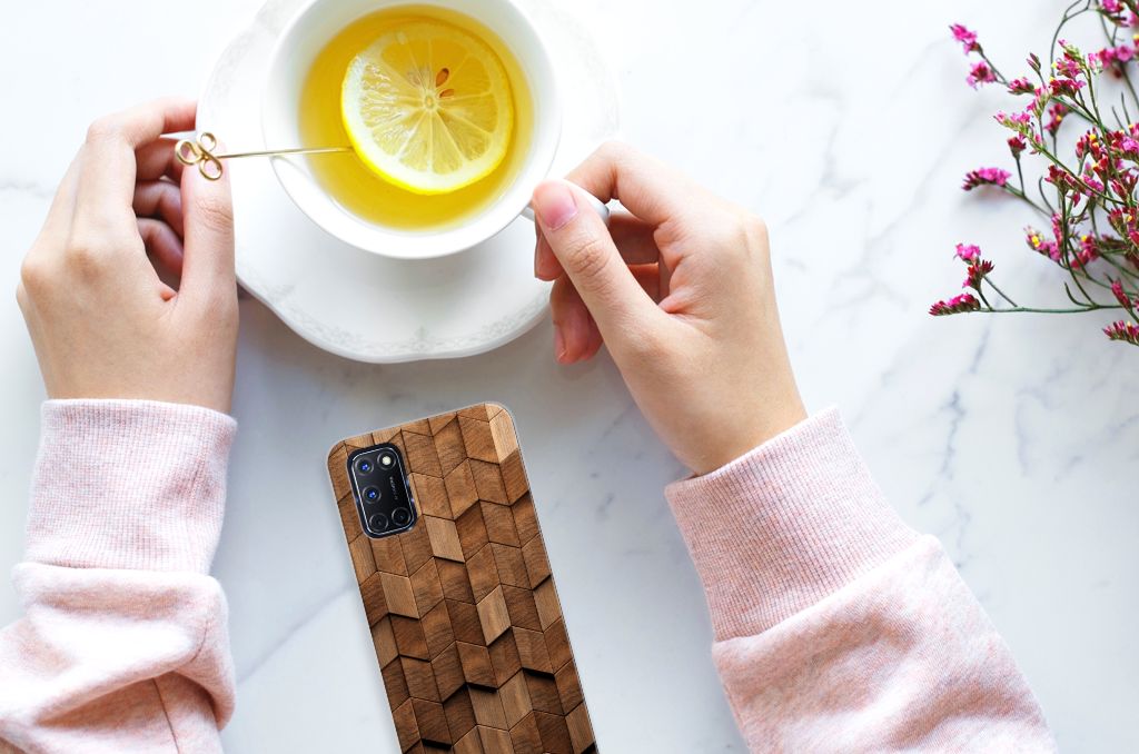 Onze houten hoesjes, niet letterlijk natuurlijk, maar onze design hoesjes met een bedrukking van houtprint zijn erg populair. Daarom werd het tijd voor een uitbreiding van onze collectie houten hoesjes. Hoe tof is dit wooden cubes design? Gegarandeerd dat jij met een uniek hoesje rond loopt! Dit design wordt geprint op een Bumper Hoesje speciaal op maat gemaakt voor de OPPO A52 | A72. Het ligt prettig in de hand en is licht van gewicht. Alleen de achterkant van je telefoon wordt beschermd. Daarom adviseren wij om dit hoesje in combinatie met een screenprotector te gebruiken. Bescherm jouw smartphone vandaag nog met dit toffe wooden cubes hoesje!