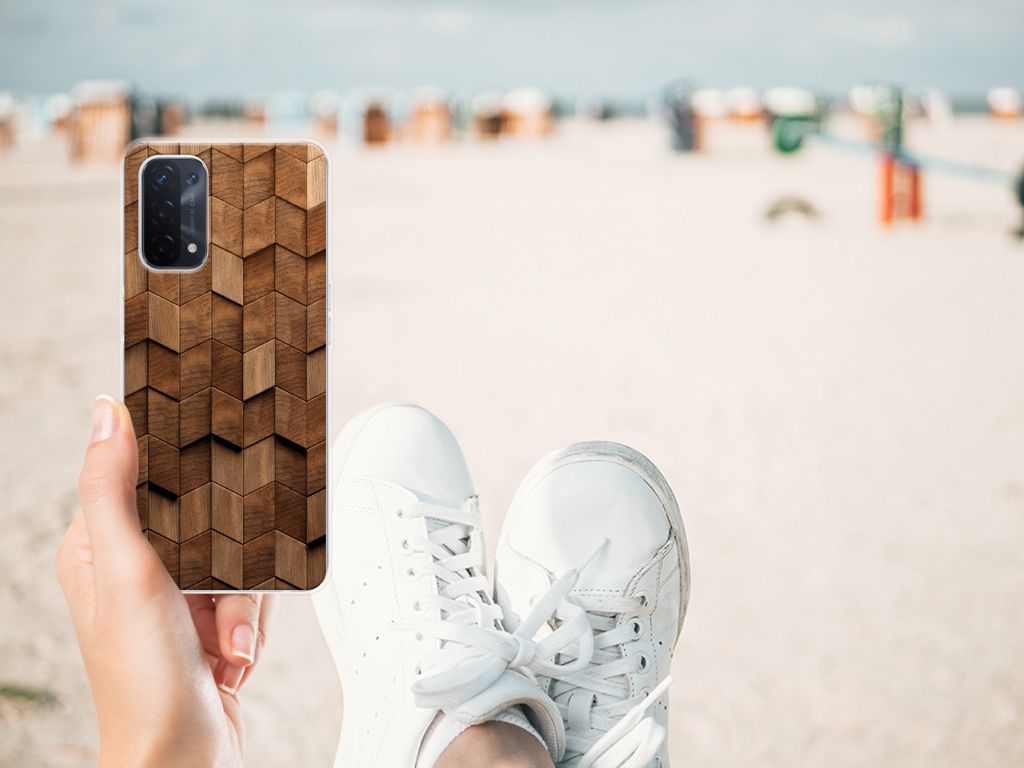 Onze houten hoesjes, niet letterlijk natuurlijk, maar onze design hoesjes met een bedrukking van houtprint zijn erg populair. Daarom werd het tijd voor een uitbreiding van onze collectie houten hoesjes. Hoe tof is dit wooden cubes design? Gegarandeerd dat jij met een uniek hoesje rond loopt! Dit design wordt geprint op een Bumper Hoesje speciaal op maat gemaakt voor de OPPO A93 5G. Het ligt prettig in de hand en is licht van gewicht. Alleen de achterkant van je telefoon wordt beschermd. Daarom adviseren wij om dit hoesje in combinatie met een screenprotector te gebruiken. Bescherm jouw smartphone vandaag nog met dit toffe wooden cubes hoesje!