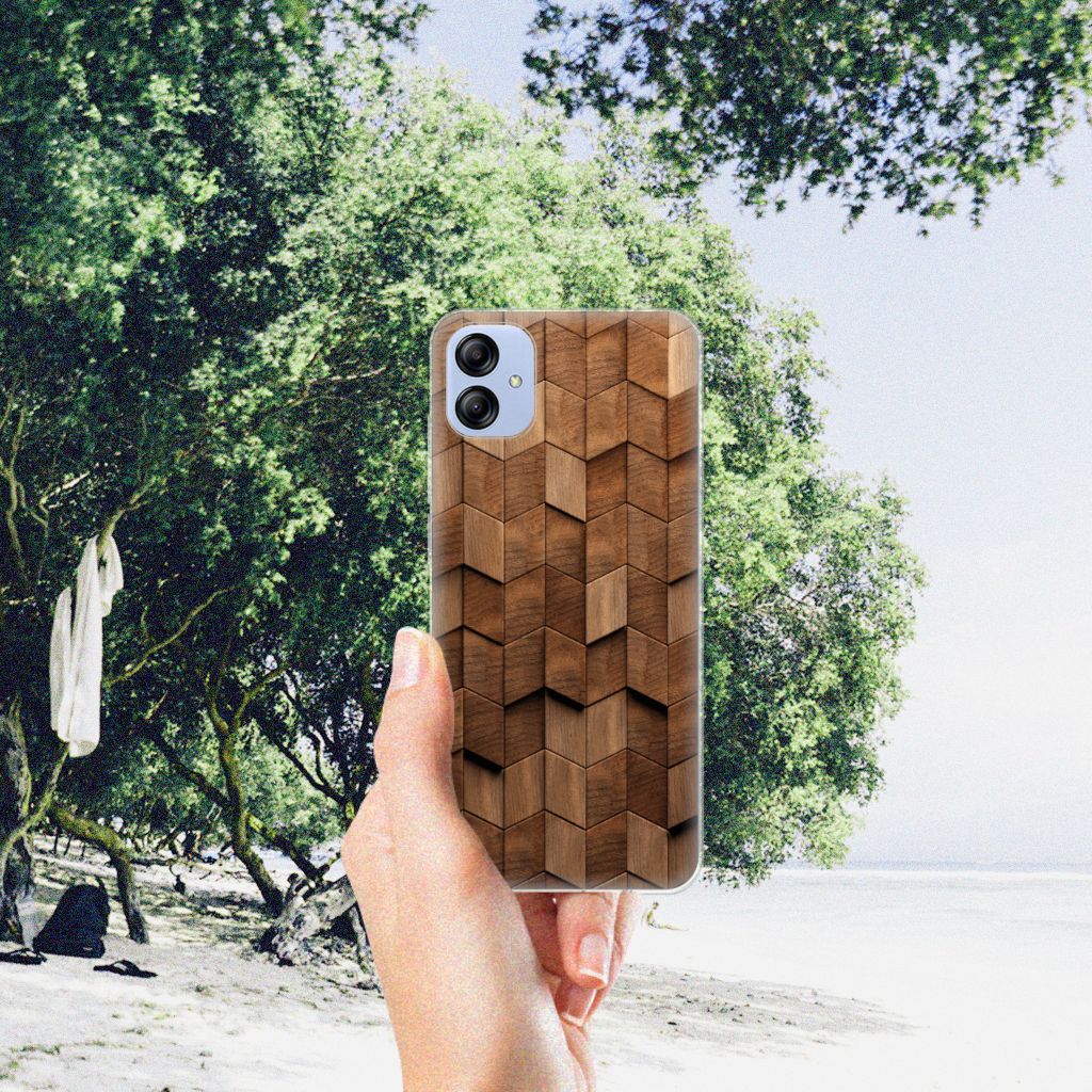 Onze houten hoesjes, niet letterlijk natuurlijk, maar onze design hoesjes met een bedrukking van houtprint zijn erg populair. Daarom werd het tijd voor een uitbreiding van onze collectie houten hoesjes. Hoe tof is dit wooden cubes design? Gegarandeerd dat jij met een uniek hoesje rond loopt! Dit design wordt geprint op een Bumper Hoesje speciaal op maat gemaakt voor de Samsung Galaxy A04e. Het ligt prettig in de hand en is licht van gewicht. Alleen de achterkant van je telefoon wordt beschermd. Daarom adviseren wij om dit hoesje in combinatie met een screenprotector te gebruiken. Bescherm jouw smartphone vandaag nog met dit toffe wooden cubes hoesje!