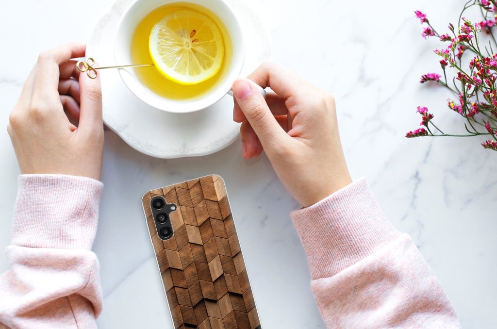 Onze houten hoesjes, niet letterlijk natuurlijk, maar onze design hoesjes met een bedrukking van houtprint zijn erg populair. Daarom werd het tijd voor een uitbreiding van onze collectie houten hoesjes. Hoe tof is dit wooden cubes design? Gegarandeerd dat jij met een uniek hoesje rond loopt! Dit design wordt geprint op een Bumper Hoesje speciaal op maat gemaakt voor de Samsung Galaxy A13 | A04s. Het ligt prettig in de hand en is licht van gewicht. Alleen de achterkant van je telefoon wordt beschermd. Daarom adviseren wij om dit hoesje in combinatie met een screenprotector te gebruiken. Bescherm jouw smartphone vandaag nog met dit toffe wooden cubes hoesje!