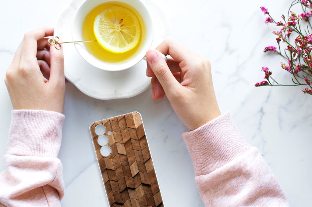 Onze houten hoesjes, niet letterlijk natuurlijk, maar onze design hoesjes met een bedrukking van houtprint zijn erg populair. Daarom werd het tijd voor een uitbreiding van onze collectie houten hoesjes. Hoe tof is dit wooden cubes design? Gegarandeerd dat jij met een uniek hoesje rond loopt! Dit design wordt geprint op een Bumper Hoesje speciaal op maat gemaakt voor de Samsung Galaxy A54 5G. Het ligt prettig in de hand en is licht van gewicht. Alleen de achterkant van je telefoon wordt beschermd. Daarom adviseren wij om dit hoesje in combinatie met een screenprotector te gebruiken. Bescherm jouw smartphone vandaag nog met dit toffe wooden cubes hoesje!