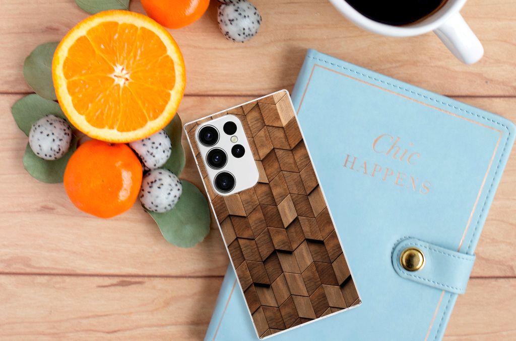 Onze houten hoesjes, niet letterlijk natuurlijk, maar onze design hoesjes met een bedrukking van houtprint zijn erg populair. Daarom werd het tijd voor een uitbreiding van onze collectie houten hoesjes. Hoe tof is dit wooden cubes design? Gegarandeerd dat jij met een uniek hoesje rond loopt! Dit design wordt geprint op een Bumper Hoesje speciaal op maat gemaakt voor de Samsung Galaxy S23 Ultra. Het ligt prettig in de hand en is licht van gewicht. Alleen de achterkant van je telefoon wordt beschermd. Daarom adviseren wij om dit hoesje in combinatie met een screenprotector te gebruiken. Bescherm jouw smartphone vandaag nog met dit toffe wooden cubes hoesje!