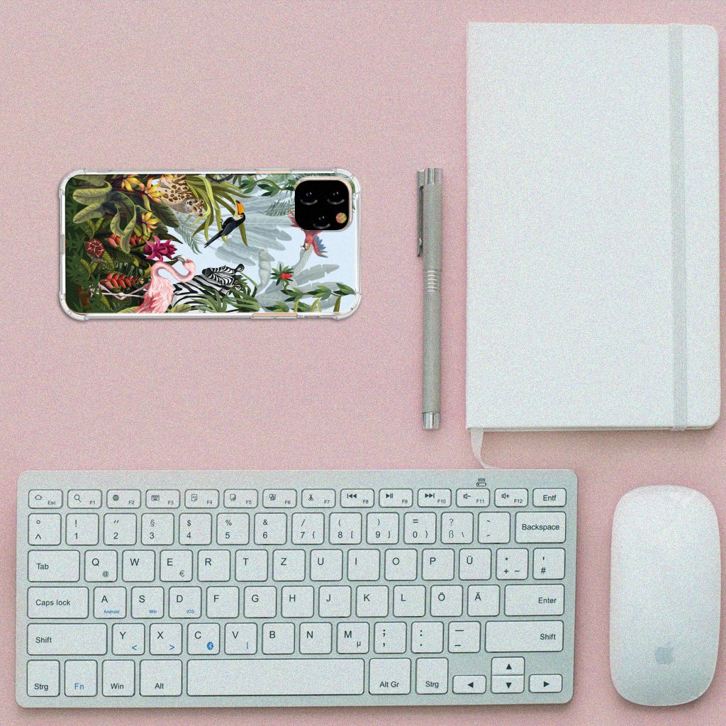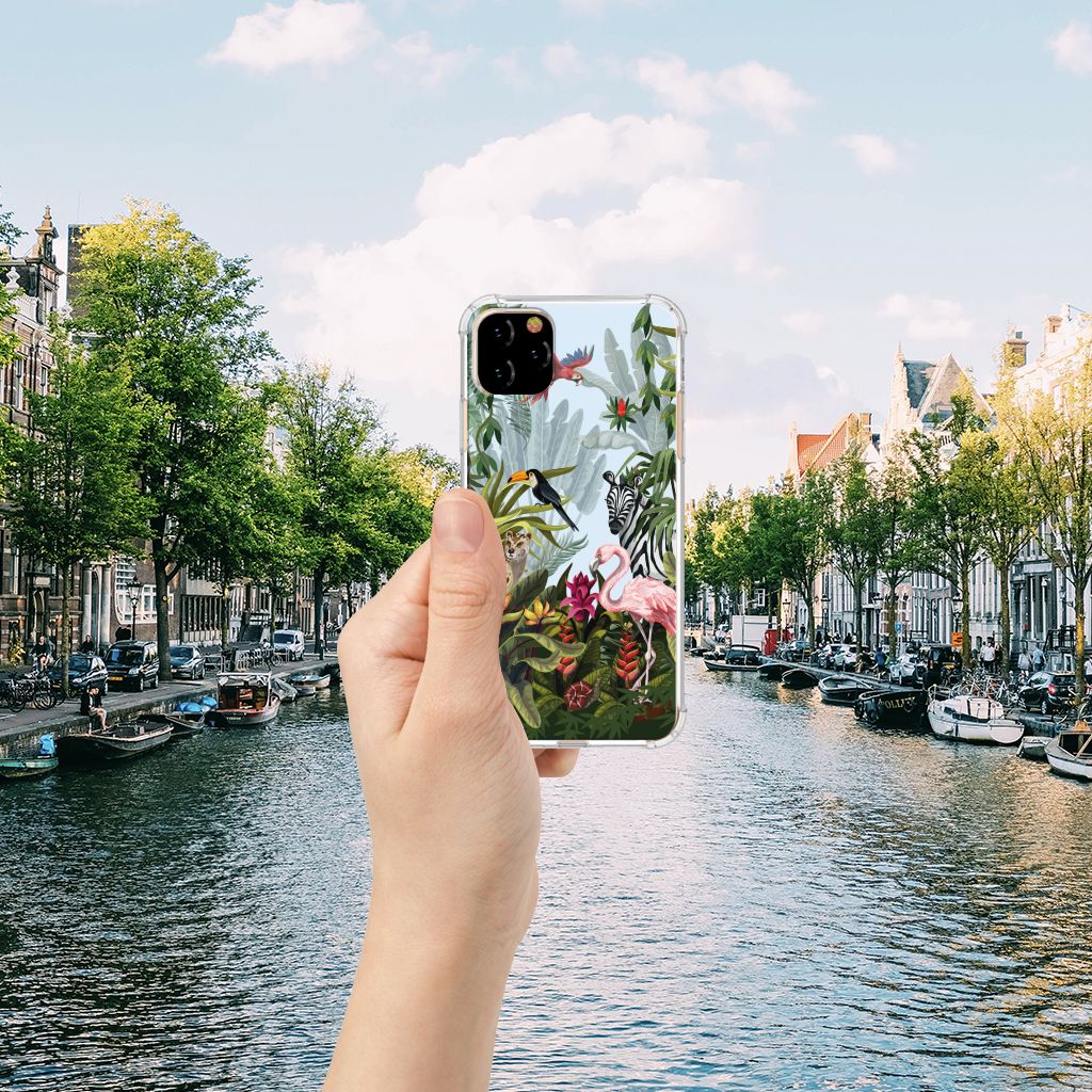 Ben je op zoek naar een tropische verrassing voor je Apple iPhone 11 Pro Max? Dan is dit hoesje in jungle stijl zeker iets voor jou! Met de verschillende soorten dieren waan je je even in de Jungle, vind je ook niet? Dit design wordt geprint op een Case Anti-shock. Het ligt prettig in de hand en is licht van gewicht. Ook fijn zijn de extra dikke hoeken en randen, waardoor je Apple iPhone 11 Pro Max goed beschermd is bij een val. Alleen de achterkant van je telefoon wordt beschermd. Daarom adviseren wij om dit hoesje in combinatie met een screenprotector te gebruiken. Bestel vandaag nog met dit telefoonhoesje met stoere jungle design!
