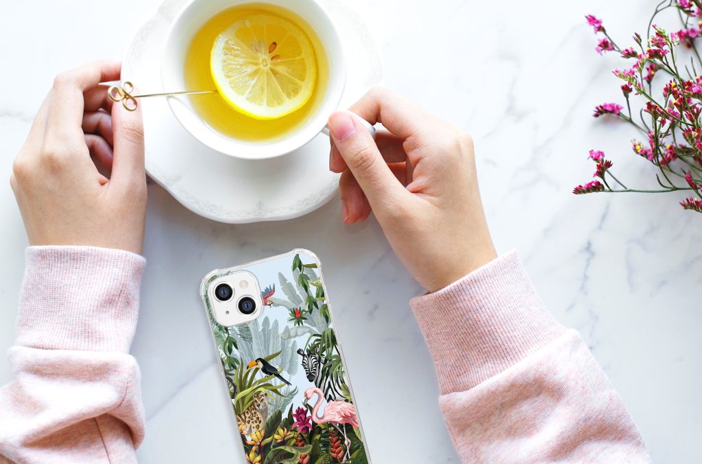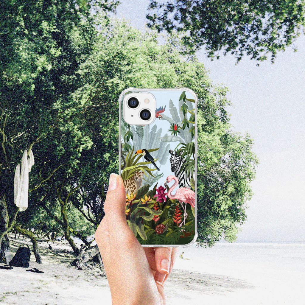 Ben je op zoek naar een tropische verrassing voor je Apple iPhone 14 Plus? Dan is dit hoesje in jungle stijl zeker iets voor jou! Met de verschillende soorten dieren waan je je even in de Jungle, vind je ook niet? Dit design wordt geprint op een Case Anti-shock. Het ligt prettig in de hand en is licht van gewicht. Ook fijn zijn de extra dikke hoeken en randen, waardoor je Apple iPhone 14 Plus goed beschermd is bij een val. Alleen de achterkant van je telefoon wordt beschermd. Daarom adviseren wij om dit hoesje in combinatie met een screenprotector te gebruiken. Bestel vandaag nog met dit telefoonhoesje met stoere jungle design!