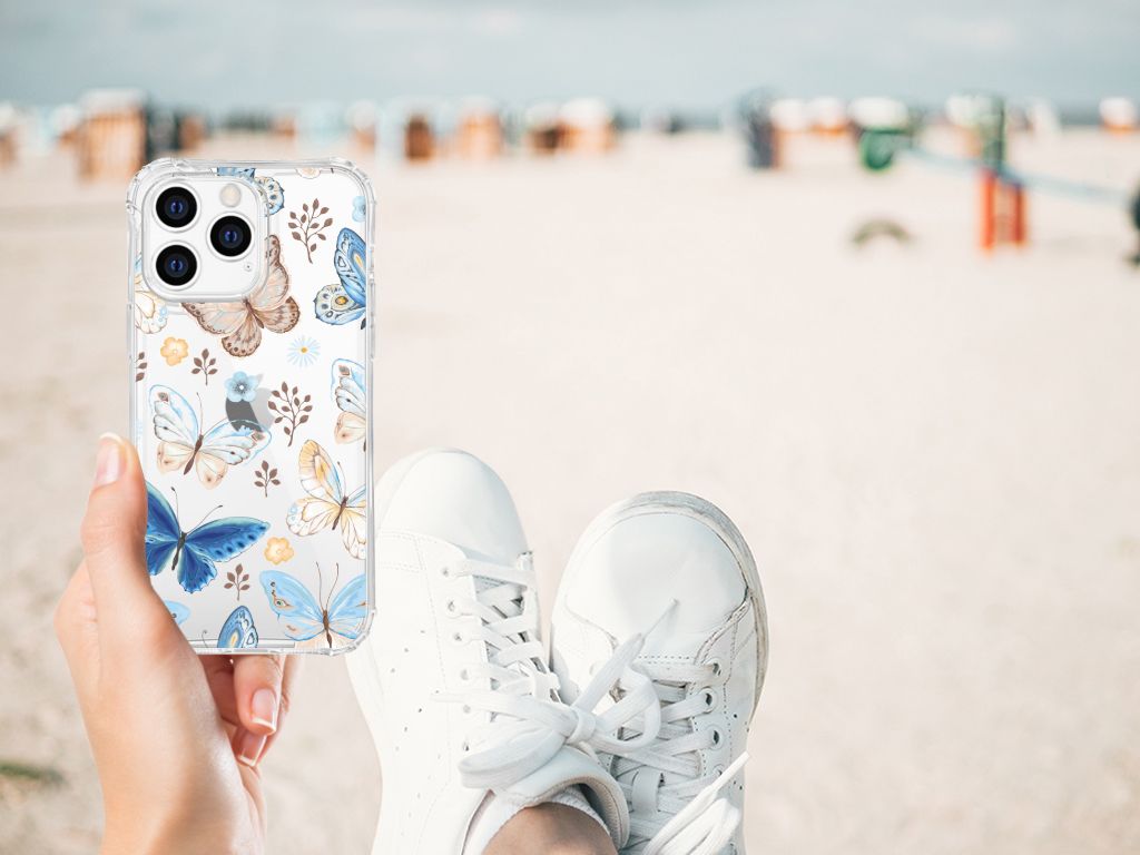 Wist je dat vlinders symbool staan voor geluk, vrijheid en liefde? Veel mensen worden daarom vrolijk als ze een vlinder voorbij zien fladderen. Hoe leuk is het dan om dit vlinder design op jouw Apple iPhone 14 Pro Max te hebben? Zo wordt jij zeker vrolijk bij het zien van je telefoon. Dit vlinder design wordt geprint op een Case Anti-shock. Het ligt prettig in de hand en is licht van gewicht. Ook fijn zijn de extra dikke hoeken en randen, waardoor je Apple iPhone 14 Pro Max goed beschermd is bij een val. Alleen de achterkant van je telefoon wordt beschermd. Daarom adviseren wij om dit hoesje in combinatie met een screenprotector te gebruiken. Bestel vandaag nog dit telefoonhoesje met vrolijke vlinder design!
