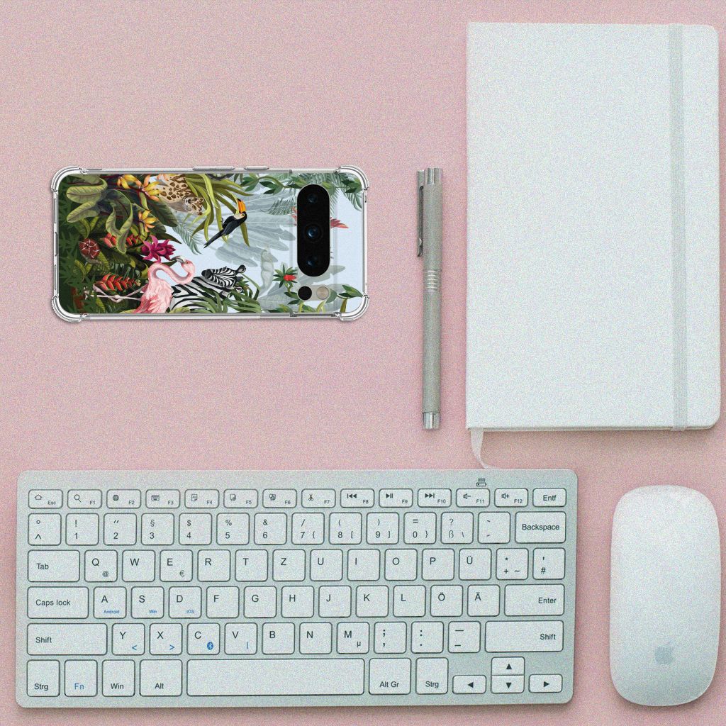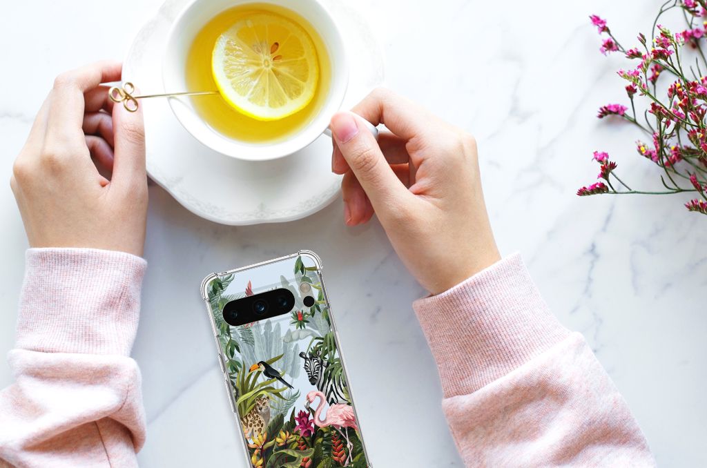 Ben je op zoek naar een tropische verrassing voor je Google Pixel 8 Pro? Dan is dit hoesje in jungle stijl zeker iets voor jou! Met de verschillende soorten dieren waan je je even in de Jungle, vind je ook niet? Dit design wordt geprint op een Case Anti-shock. Het ligt prettig in de hand en is licht van gewicht. Ook fijn zijn de extra dikke hoeken en randen, waardoor je Google Pixel 8 Pro goed beschermd is bij een val. Alleen de achterkant van je telefoon wordt beschermd. Daarom adviseren wij om dit hoesje in combinatie met een screenprotector te gebruiken. Bestel vandaag nog met dit telefoonhoesje met stoere jungle design!