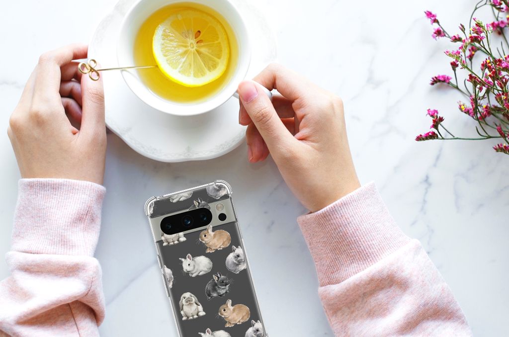 Wist je dat er wel 50 verschillende konijnenrassen zijn die zich onderscheiden in kleur, vacht, bouw en formaat? Daarom kon dit design met konijntjes eigenlijk niet ontbreken in onze collectie hoesjes. Wij zijn in ieder geval helemaal verliefd op deze schattige konijntjes. Dit design wordt geprint op een Case Anti-shock speciaal op maat gemaakt voor de Google Pixel 8 Pro. Ook fijn zijn de extra dikke hoeken en randen, waardoor je smartphone goed beschermd is bij een val. Alleen de achterkant van je telefoon wordt beschermd. Daarom adviseren wij om dit hoesje in combinatie met een screenprotector te gebruiken. Bestel vandaag nog dit telefoonhoesje met super schattige konijntjes!