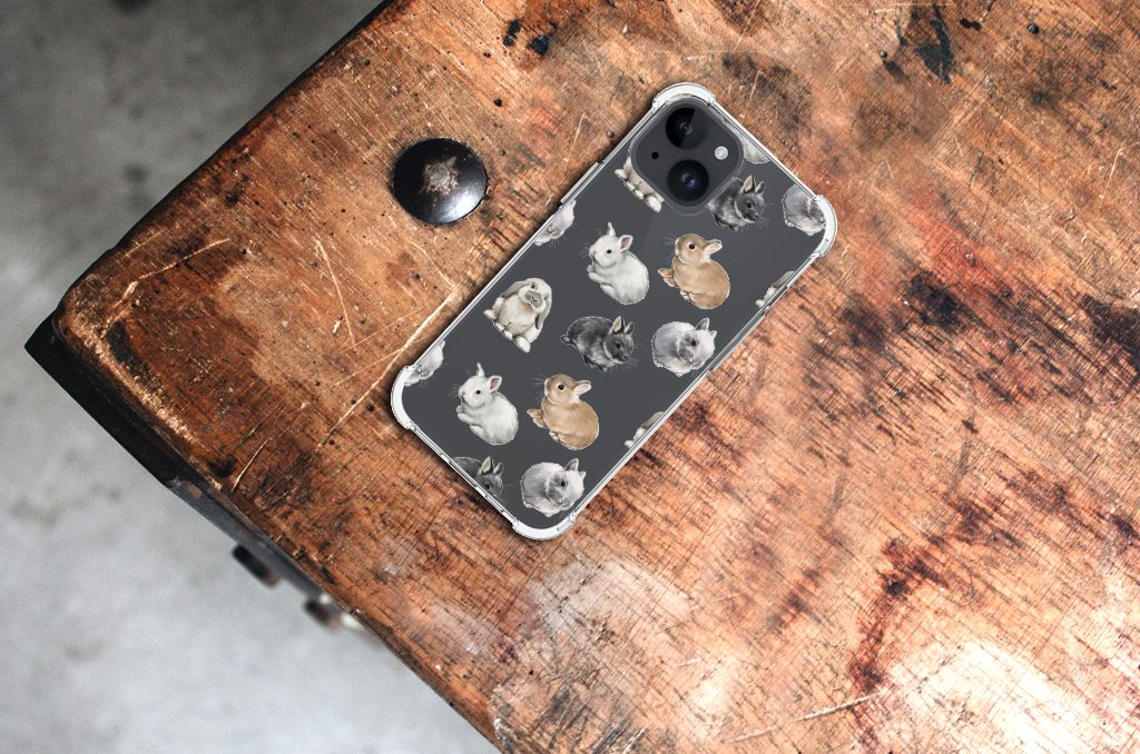 Wist je dat er wel 50 verschillende konijnenrassen zijn die zich onderscheiden in kleur, vacht, bouw en formaat? Daarom kon dit design met konijntjes eigenlijk niet ontbreken in onze collectie hoesjes. Wij zijn in ieder geval helemaal verliefd op deze schattige konijntjes. Dit design wordt geprint op een Case Anti-shock speciaal op maat gemaakt voor de iPhone 15. Ook fijn zijn de extra dikke hoeken en randen, waardoor je smartphone goed beschermd is bij een val. Alleen de achterkant van je telefoon wordt beschermd. Daarom adviseren wij om dit hoesje in combinatie met een screenprotector te gebruiken. Bestel vandaag nog dit telefoonhoesje met super schattige konijntjes!