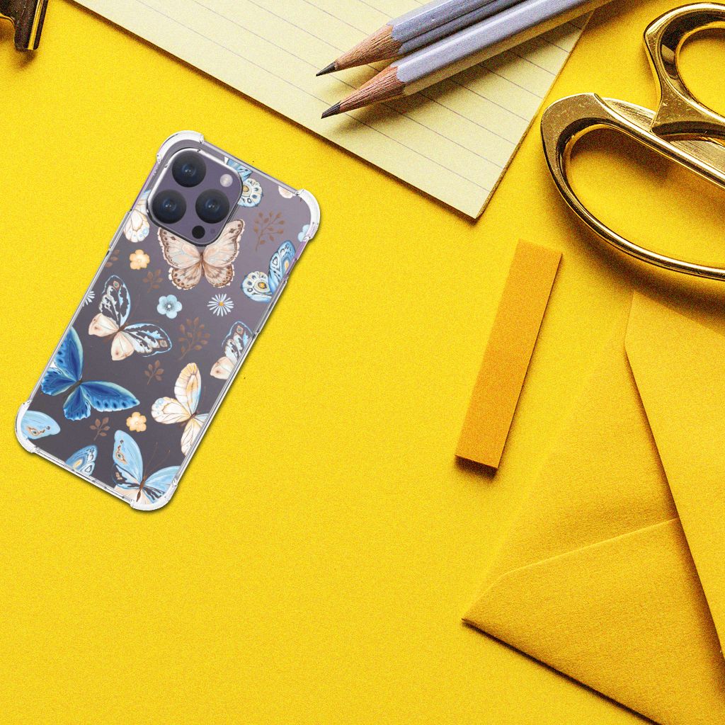 Wist je dat vlinders symbool staan voor geluk, vrijheid en liefde? Veel mensen worden daarom vrolijk als ze een vlinder voorbij zien fladderen. Hoe leuk is het dan om dit vlinder design op jouw iPhone 15 Pro Max te hebben? Zo wordt jij zeker vrolijk bij het zien van je telefoon. Dit vlinder design wordt geprint op een Case Anti-shock. Het ligt prettig in de hand en is licht van gewicht. Ook fijn zijn de extra dikke hoeken en randen, waardoor je iPhone 15 Pro Max goed beschermd is bij een val. Alleen de achterkant van je telefoon wordt beschermd. Daarom adviseren wij om dit hoesje in combinatie met een screenprotector te gebruiken. Bestel vandaag nog dit telefoonhoesje met vrolijke vlinder design!